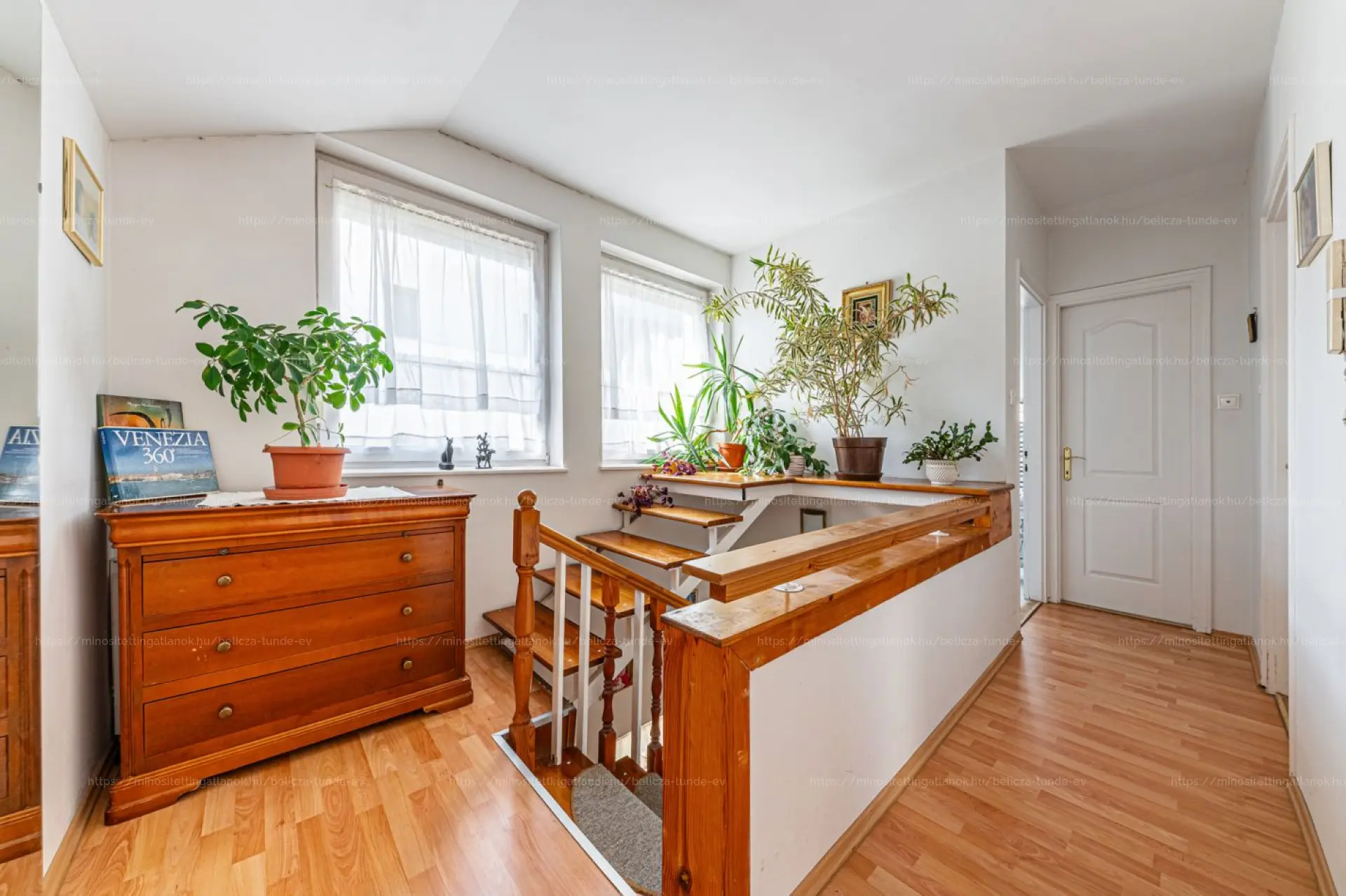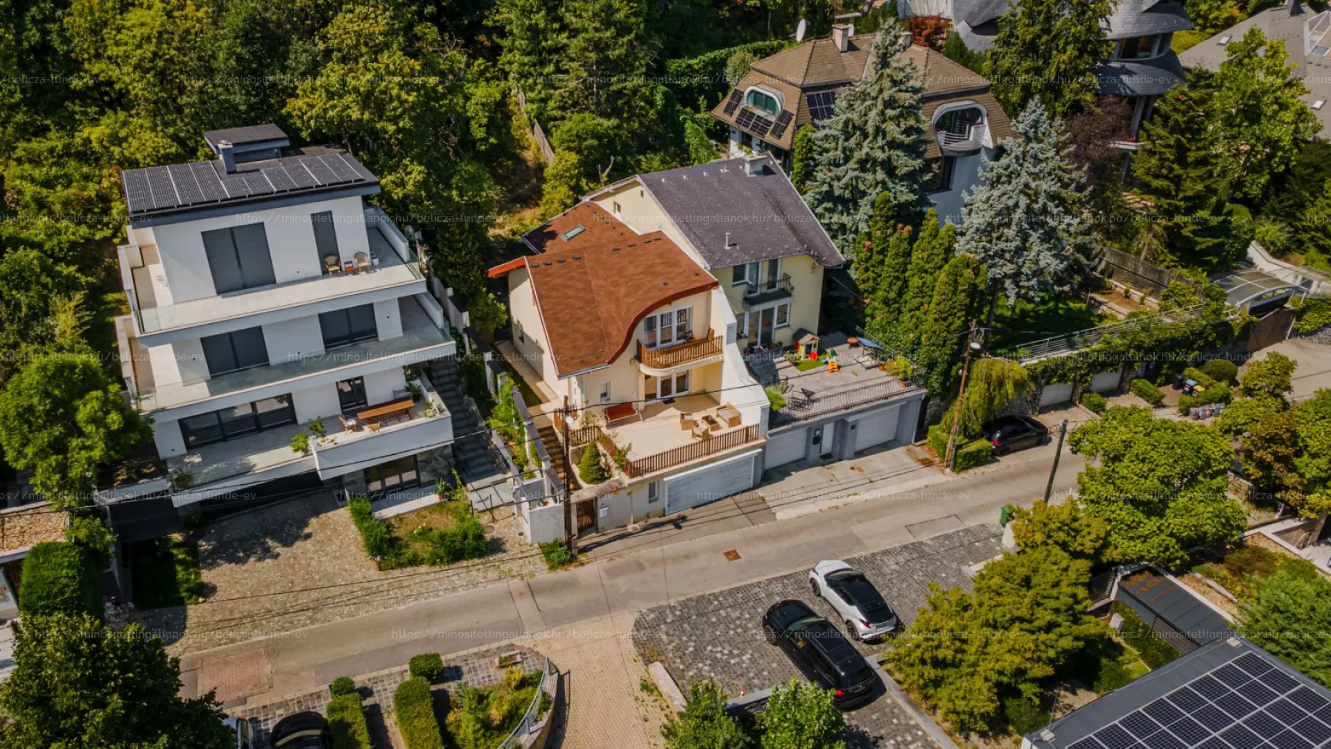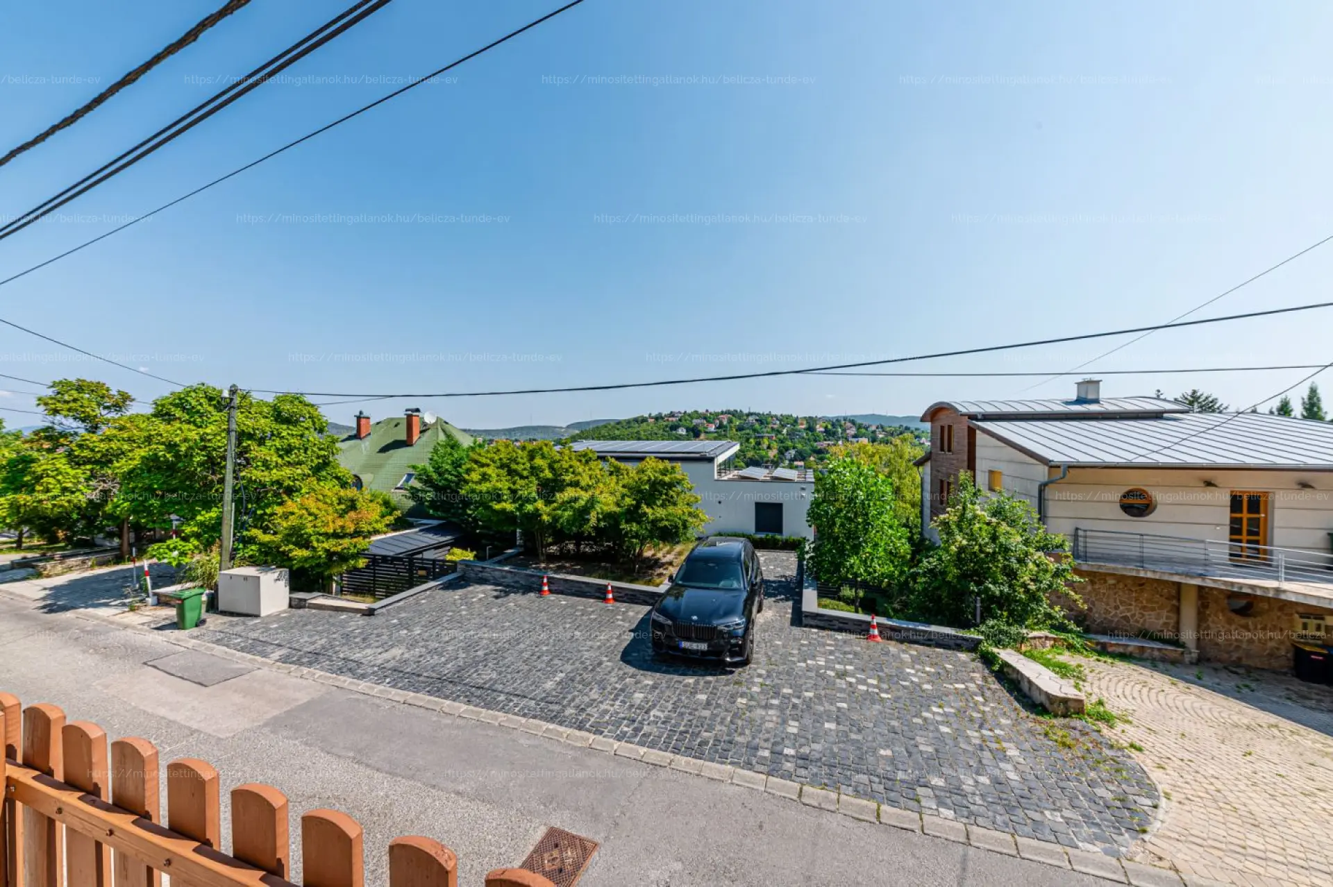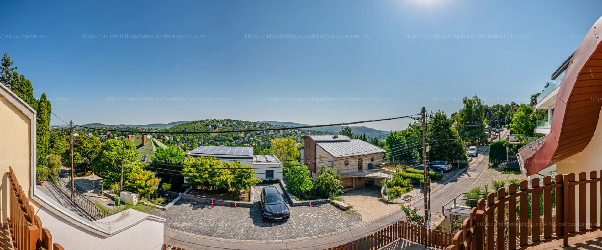 Az ingatlan egyik legnagyobb erőssége a gyönyörű panoráma, amely a nappaliból, a teraszokról és a felső szintekről is élvezhető. A telek hátsó része közvetlenül a természetvédelmi terület szélén helyezkedik el, így madárcsicsergés, nyugalom és zöld környezet öleli körül az otthont. Ezen a részen a nyári hónapokban érezhetően hűvösebb, kellemesebb a klíma, mint a belvárosban – akár több fokkal is alacsonyabb lehet a hőmérséklet.
