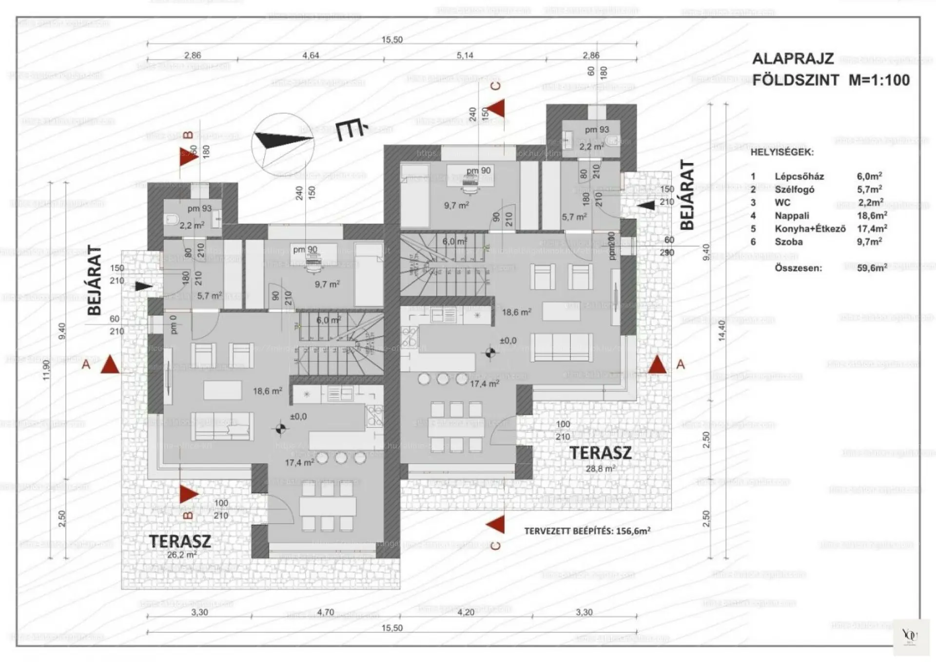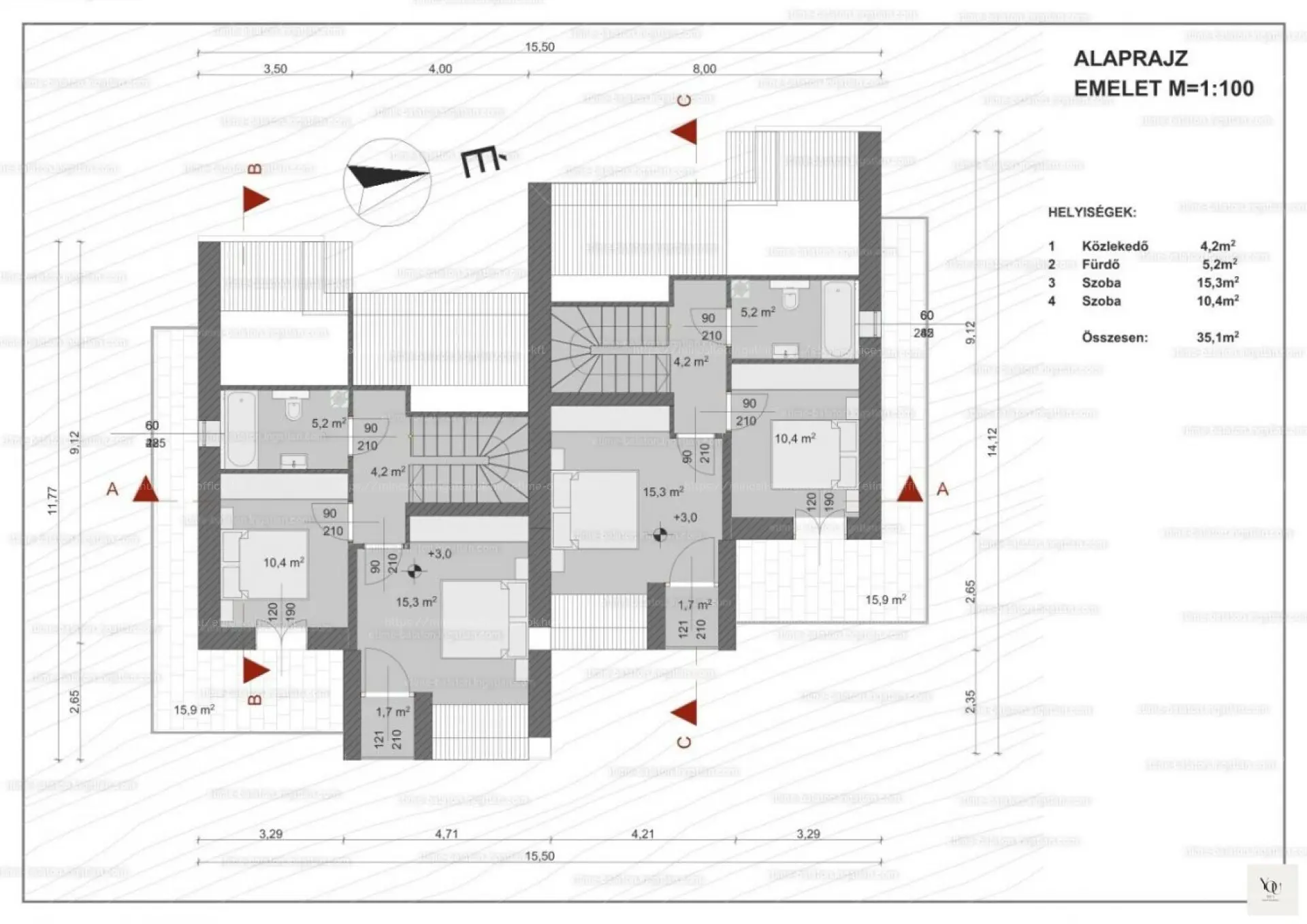 A telekre egy 300 m2-es házat tervezett tulajdonosa. A tervek rendelkezésre állnak. Víz és villany a telken belül, csatorna az utcán található.