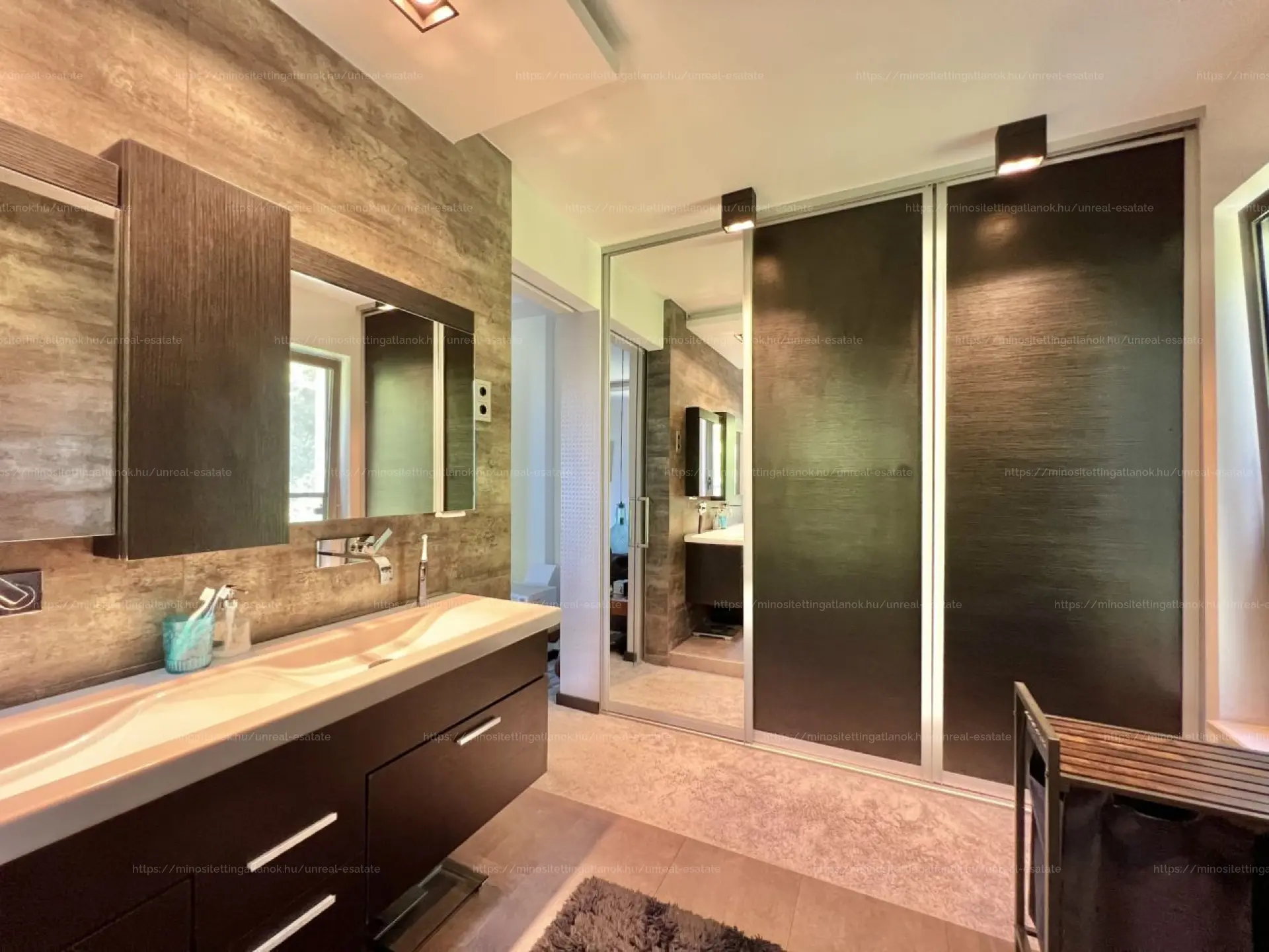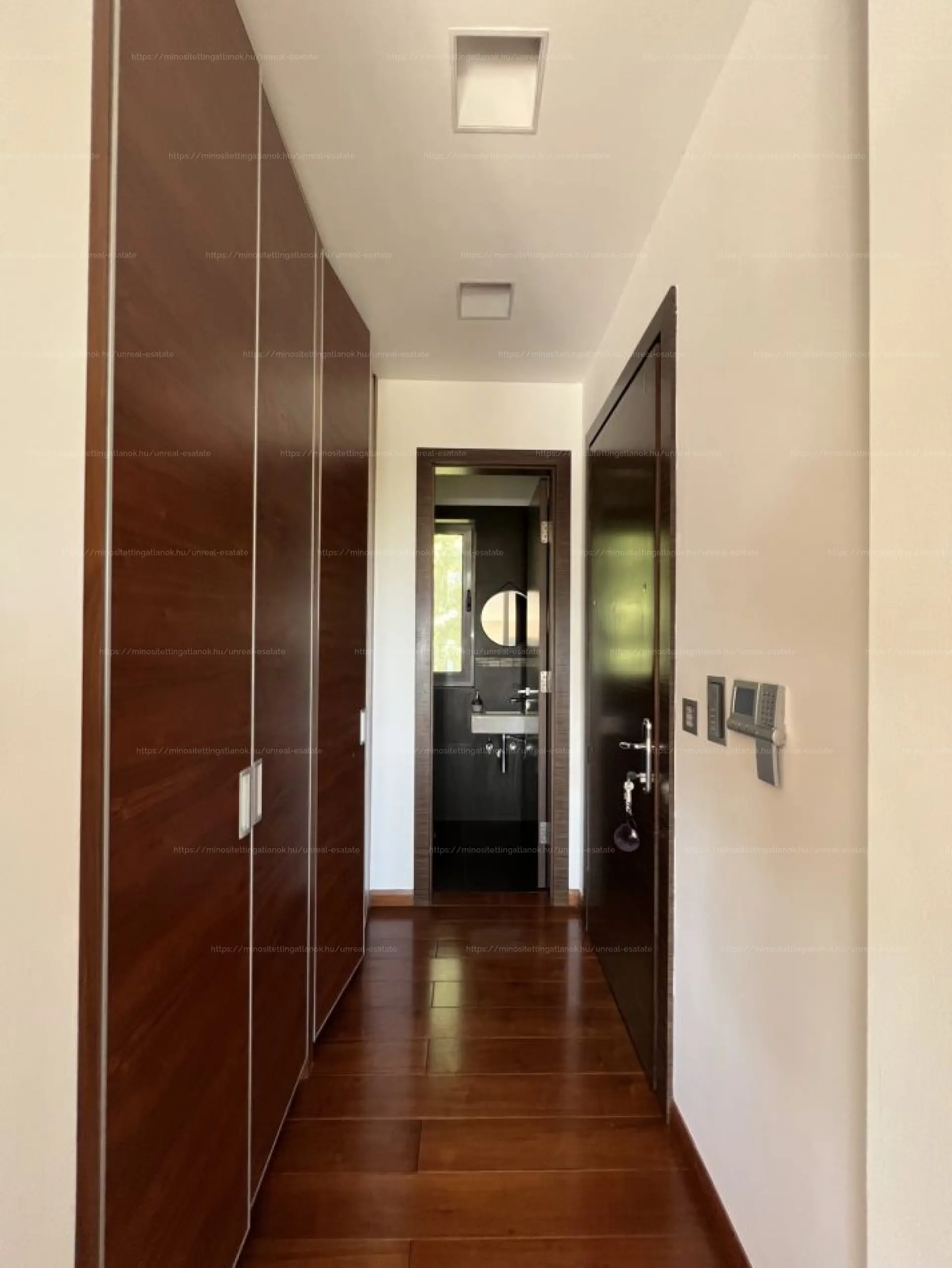 A penthouse lakás egy mindössze kétlakásos társasház legfelső szintjén helyezkedik el, teljes békét és nyugalmat biztosítva tulajdonosának. Az ingatlan ötvözi a modern építészeti megoldásokat a természetes anyagok időtálló eleganciájával.