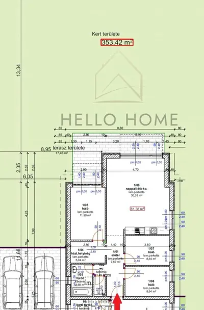 Ez a 78 m²-es, 4 szobás otthon egy 17 m²-es terasszal és egy lenyűgöző, 353 m²-es SAJÁT használatú kerttel rendelkezik (melynek ára +8 M Ft)! Élvezze a kerti sütögetéseket, a gyerekek játékát, vagy csak a reggeli kávét a zöldben, közvetlenül a lakásból kilépve.