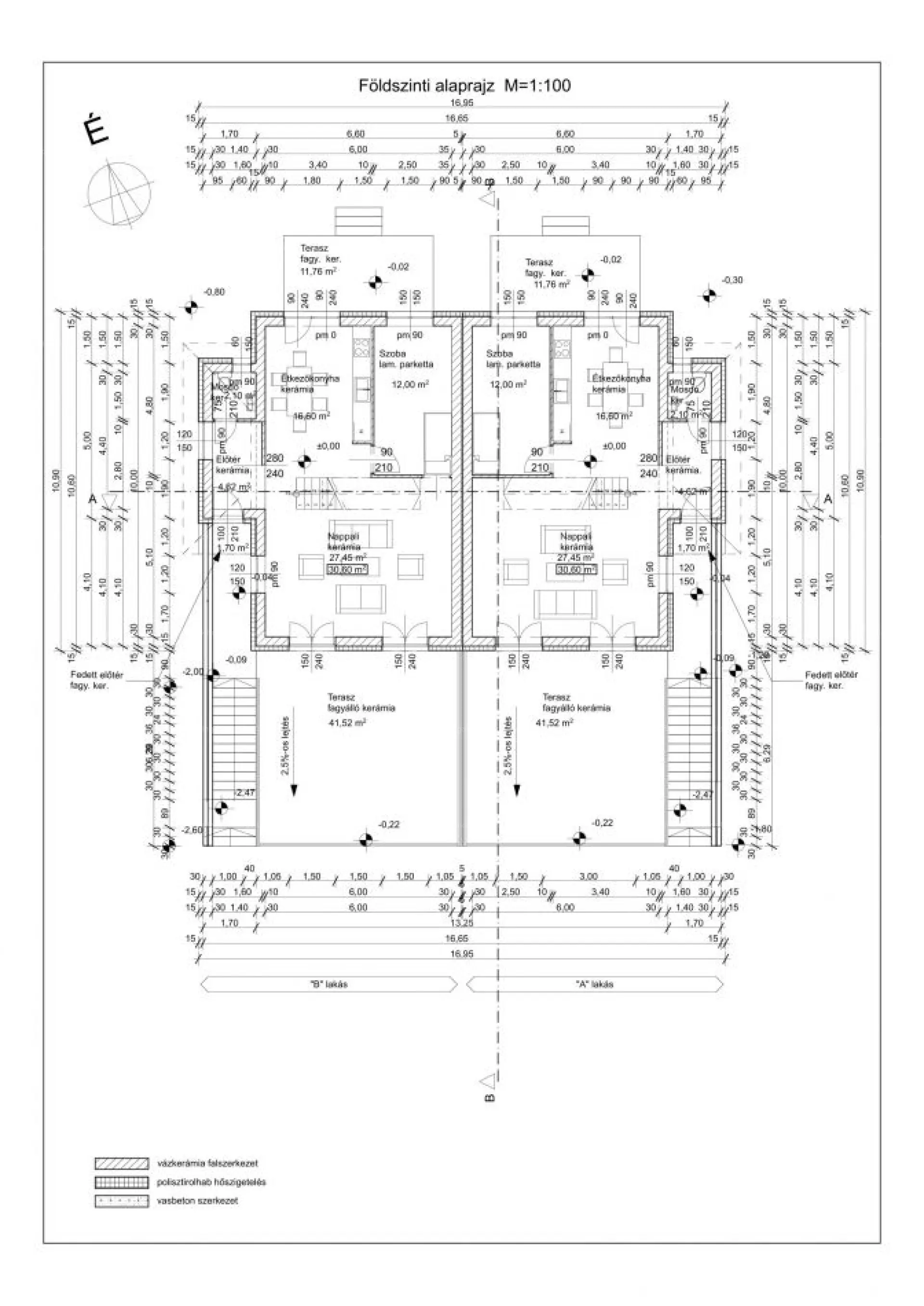 •Tető: 1. osztályú impregnált faanyag, antracit betoncserép.