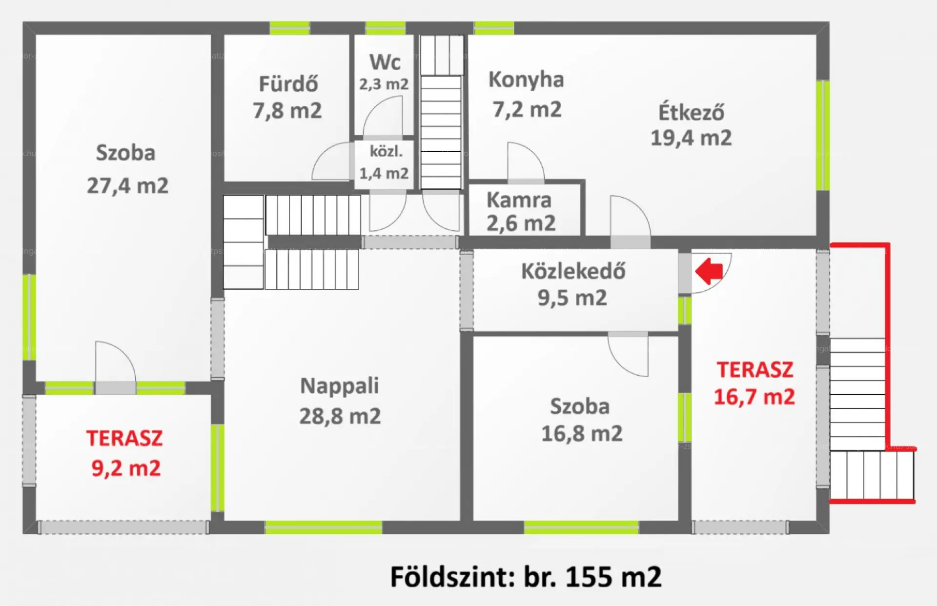 - A ház belső lépcsővel rendelkezik, de igény szerint külső lépcsővel két külön lakás is létre hozható.(kétgenerációs ház)
