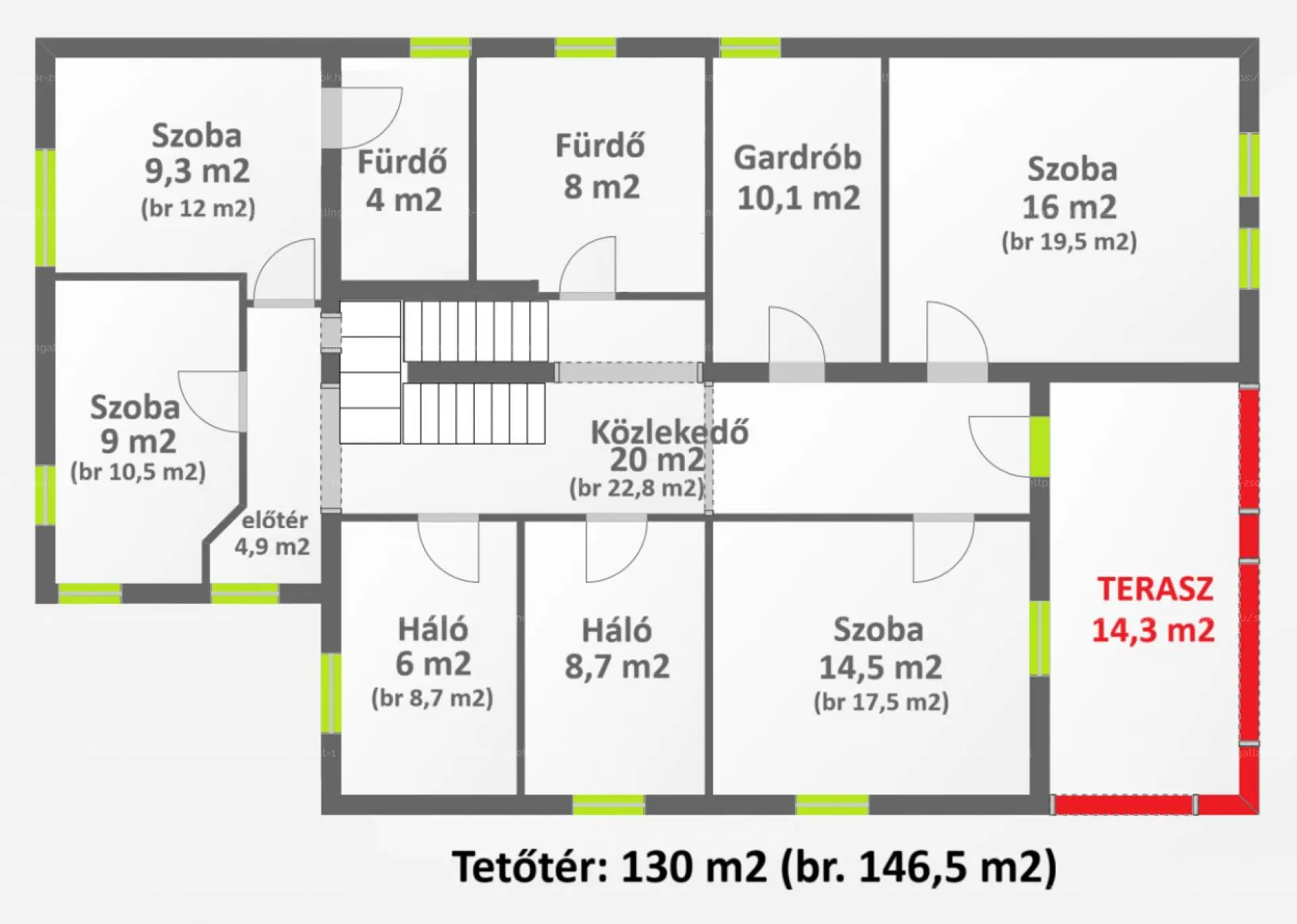 - Amennyiben az emeleti kisebb szobákat egybe nyitjuk, még mindig 4 nagyobb szobát kaphatunk.