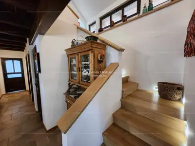 Nemcsak a külső homlokzati elemek, a nádtető, a külső nyílászárók, de a teljes berendezés a hangulatos kandallóval együtt bájos népi-építészeti hangulatot nyújt, miközben minden mai modern és kényelmet biztosító technológia megjelenik a házban.