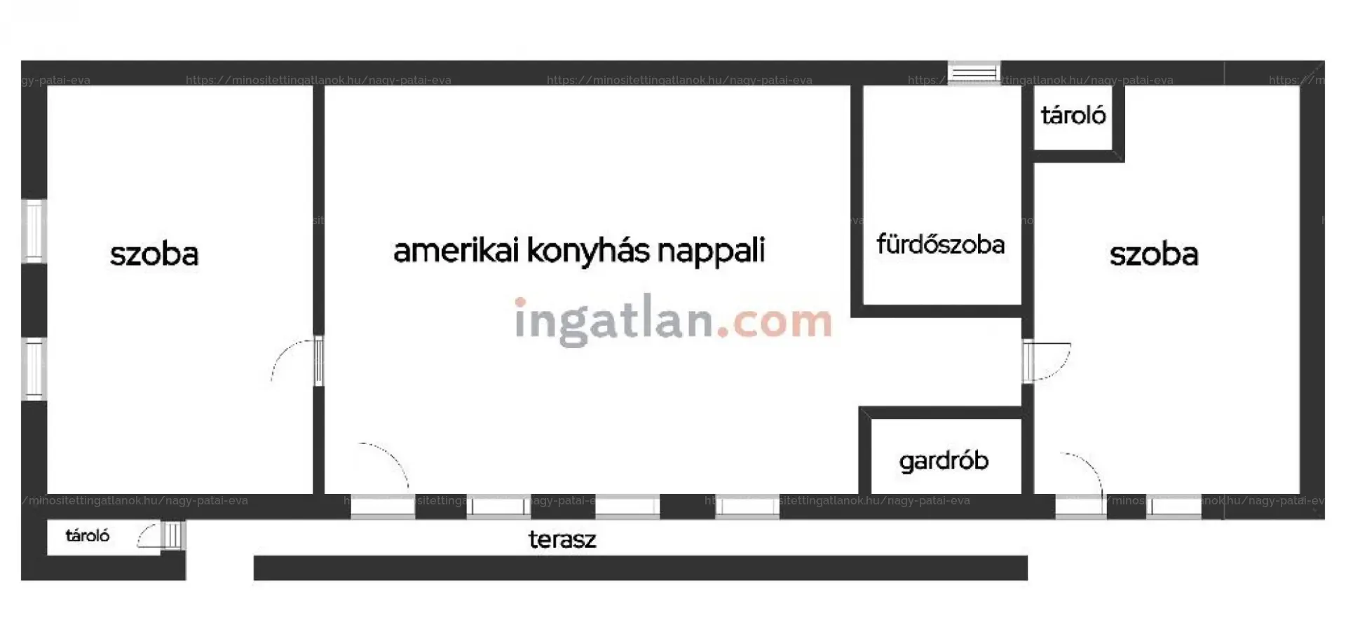 - Elrendezés: tágas, amerikai konyhás nappali + 2 kényelmes szoba + fürdőszoba
