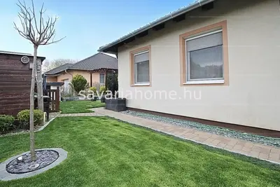 Az udvar csendes, növényekkel övezett végéről jól látható a Jáki templom jellegzetes sziluettje. Az ingatlanon felépített garázs tovább növeli az ingatlan értékét, biztosítva járműve kényelmes parkolását. A telek és az ingatlan remek adottságokkal rendelkeznek a saját igényei szerint történő átalakításhoz.