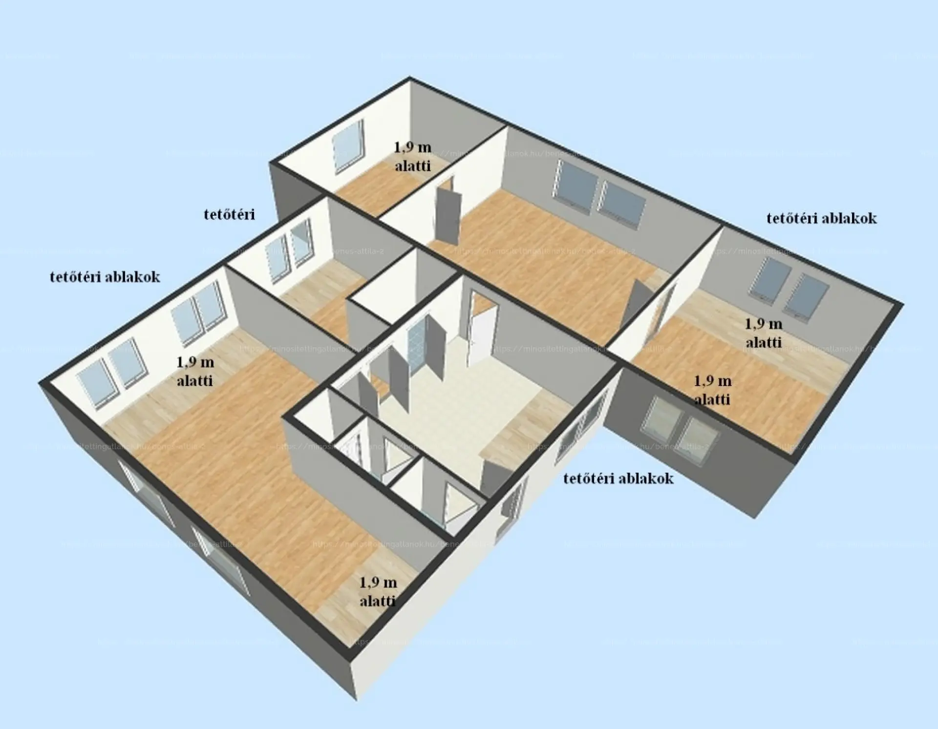 Az ingatlan rendkívül sok lehetőséget rejt magában: egy kisebb átalakítással akár zárt vagy amerikai konyhás nappali is kialakítható, miközben 3-4 hálószoba továbbra is kényelmesen elfér benne.