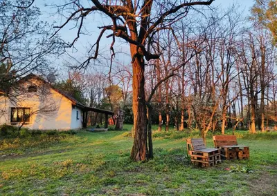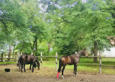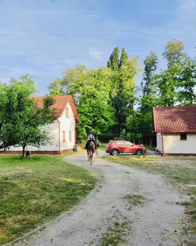 MÁSODIK TELEK: Itt egy teljesen felújított, 60 m2-es házikó várja új tulajdonosát terasszal, valamint egy 400 m2-es ISTÁLLÓ található, amely 14 lovas boxszal és nagy nyergessel büszkélkedhet. Az udvar elegendő helyet biztosít a takarmány tárolására, miközben a lovak számára tágas, fás karámok kínálnak kényelmes életteret.