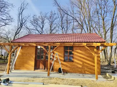 MELLÉKÉPÜLETEK: A házzal szemben egy dupla garázst és tárolót találunk. Ugyanezen a telken egy 45 m2-es, összkomfortos faház szintén rendelkezésre áll.