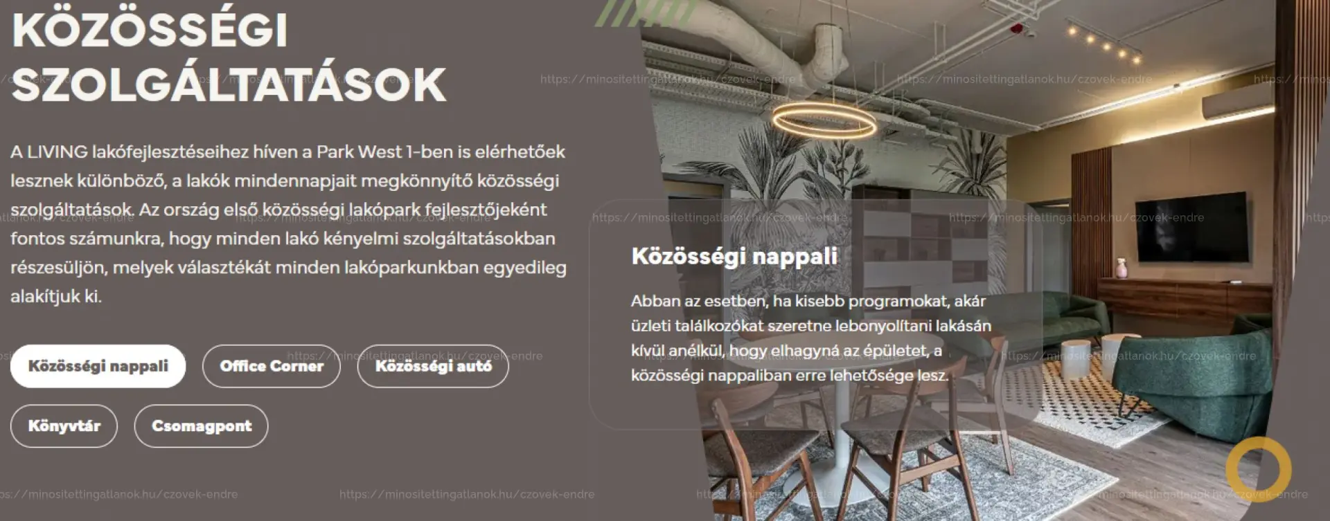 Közösségi iroda, nappali, könyvtár, autómegosztó és csomagpont, mint közösségi szolgáltatások elérhetőek a házban.