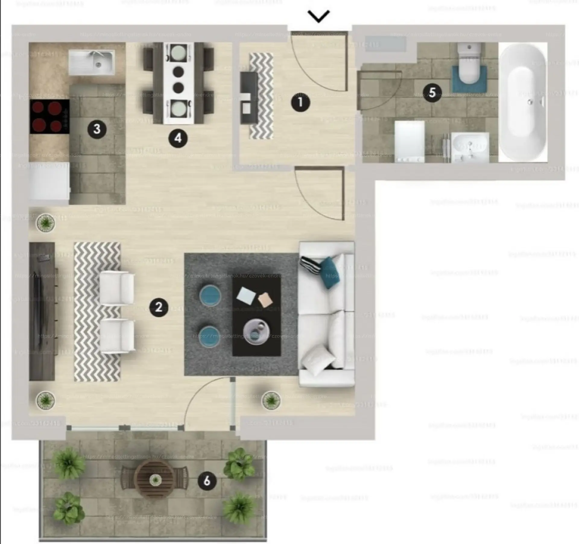 Teljeskörűen bútorozott és gépesített lakás, okosotthon rendszerrel, mint a klíma és elektromos redőnyök.