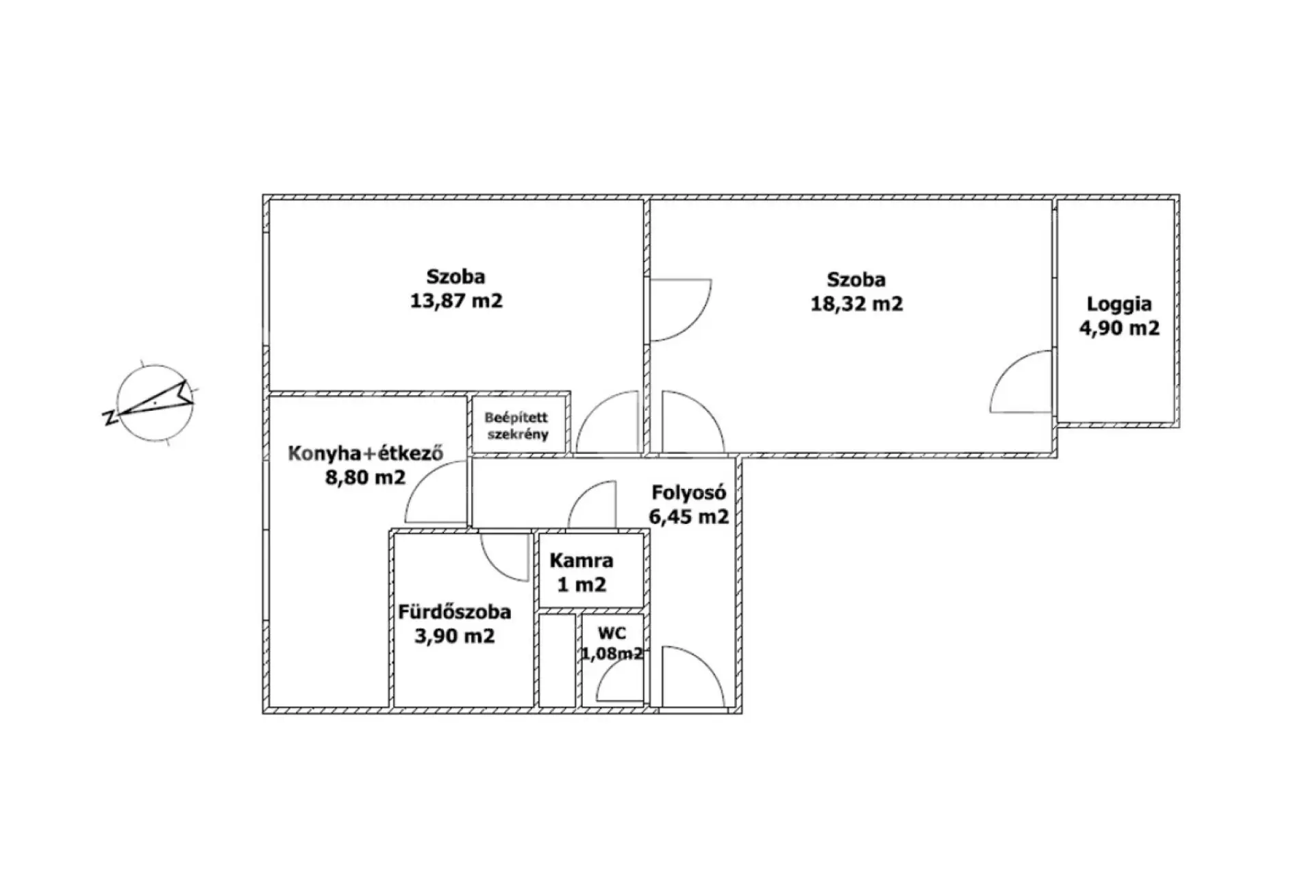 A konyha étkezővel együtt alkot egy jól berendezhető helyiséget, ráadásul egy kamra is segíti a tárolást. A fürdőszoba és a WC különálló helyiség, ami még jobban megkönnyíti a mindennapi használatot. A folyosó tágas, és beépített szekrény gondoskodik arról, hogy a ritkábban használt tárgyaknak legyen helyük anélkül, hogy élettérből venne el.