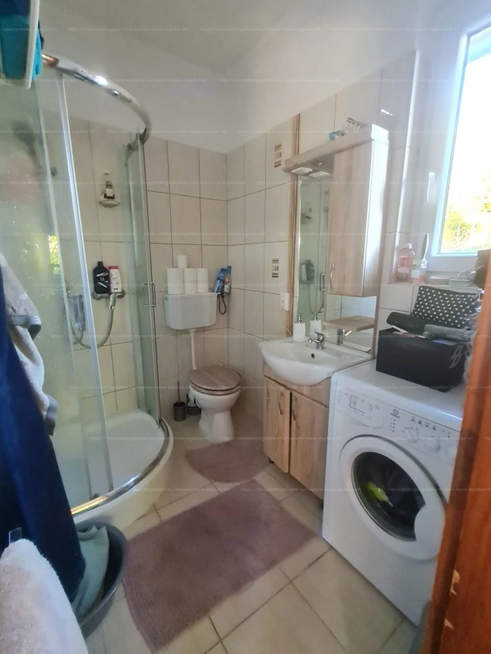 8.) laminált-parketta burkolat a szobában, a többi helyiség járólappal fedett.