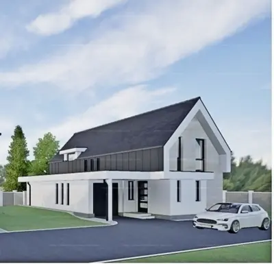 - automatizált garázskapu a nyílászárókkal színazonos lesz;