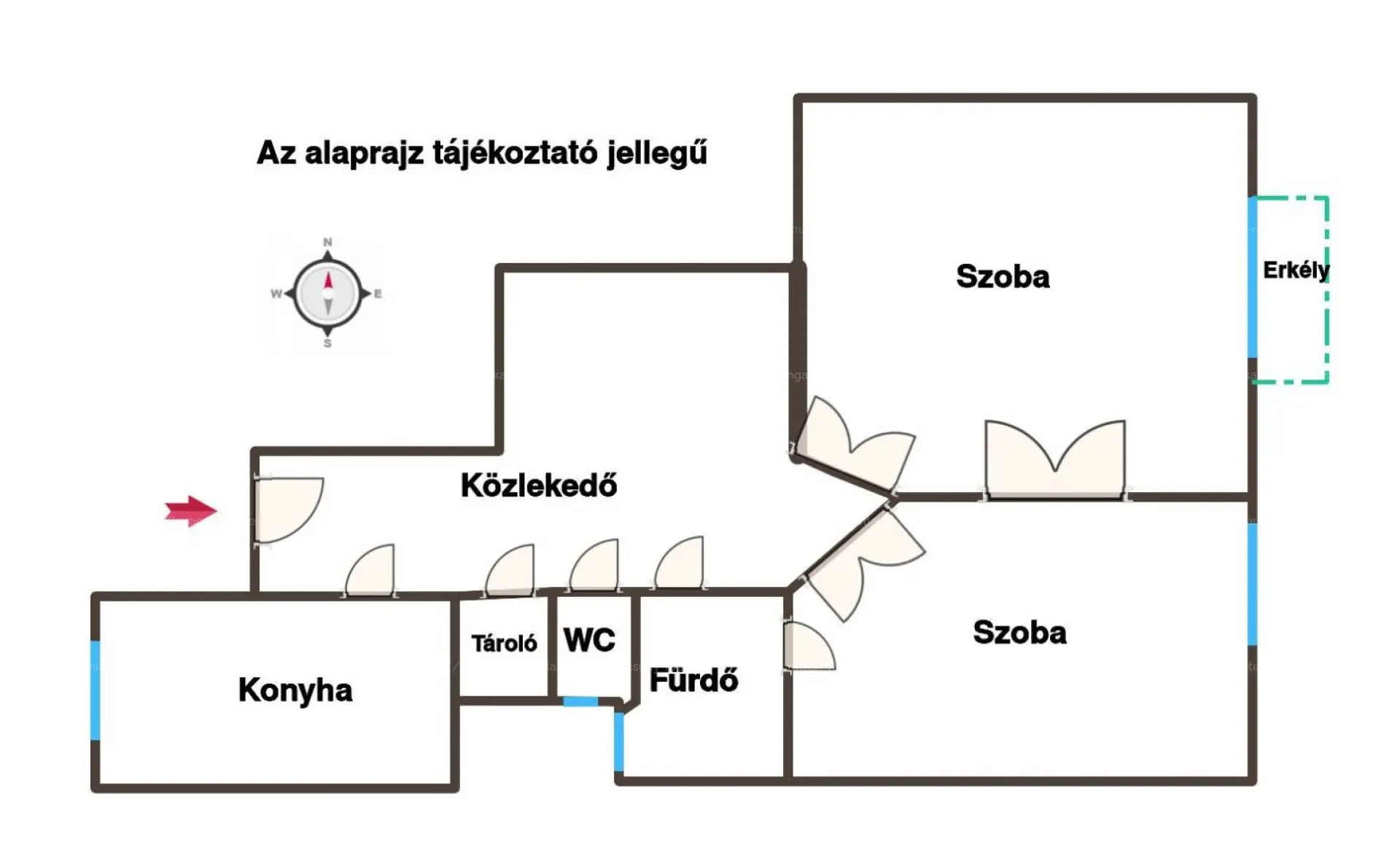 Délkeleti tájolás, utcára néző ablakok, bőséges természetes fény.
