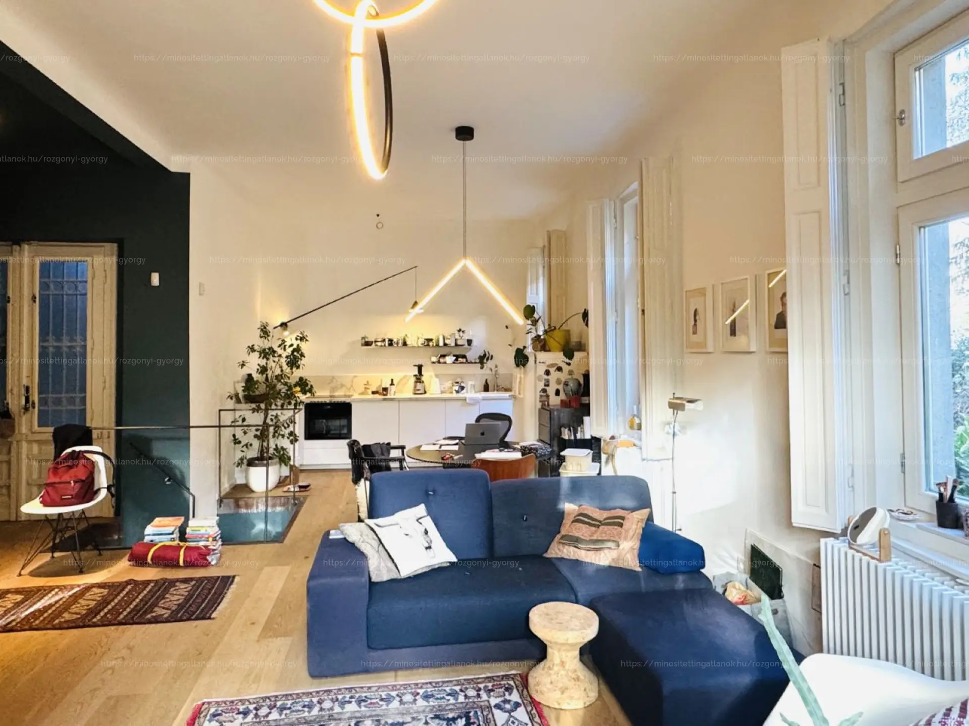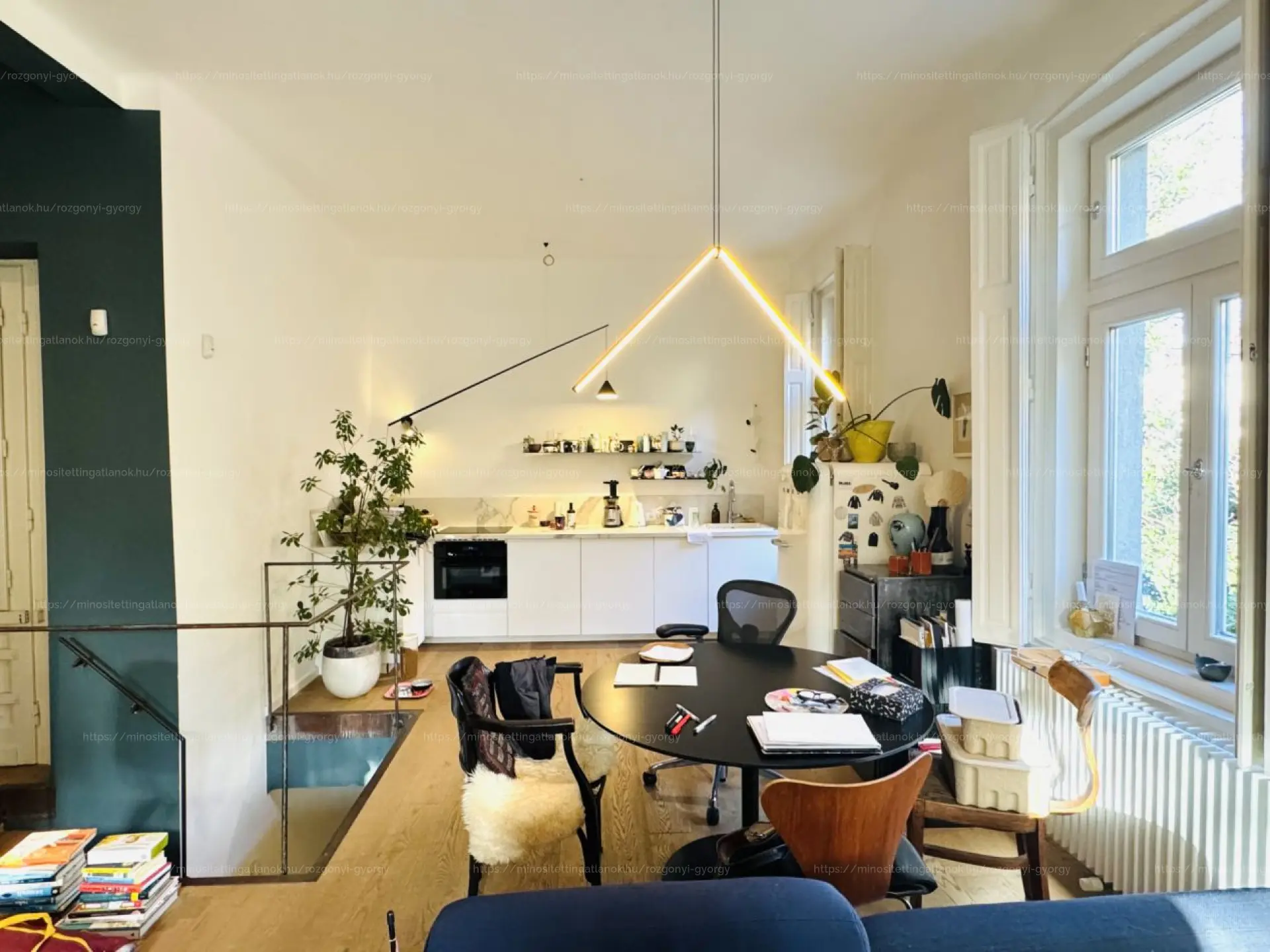 Pasarét egyik legszebb, örökzöld utcájában eladó egy különleges hangulatú, belsőépítész által tervezett duplex lakás műterem villában.