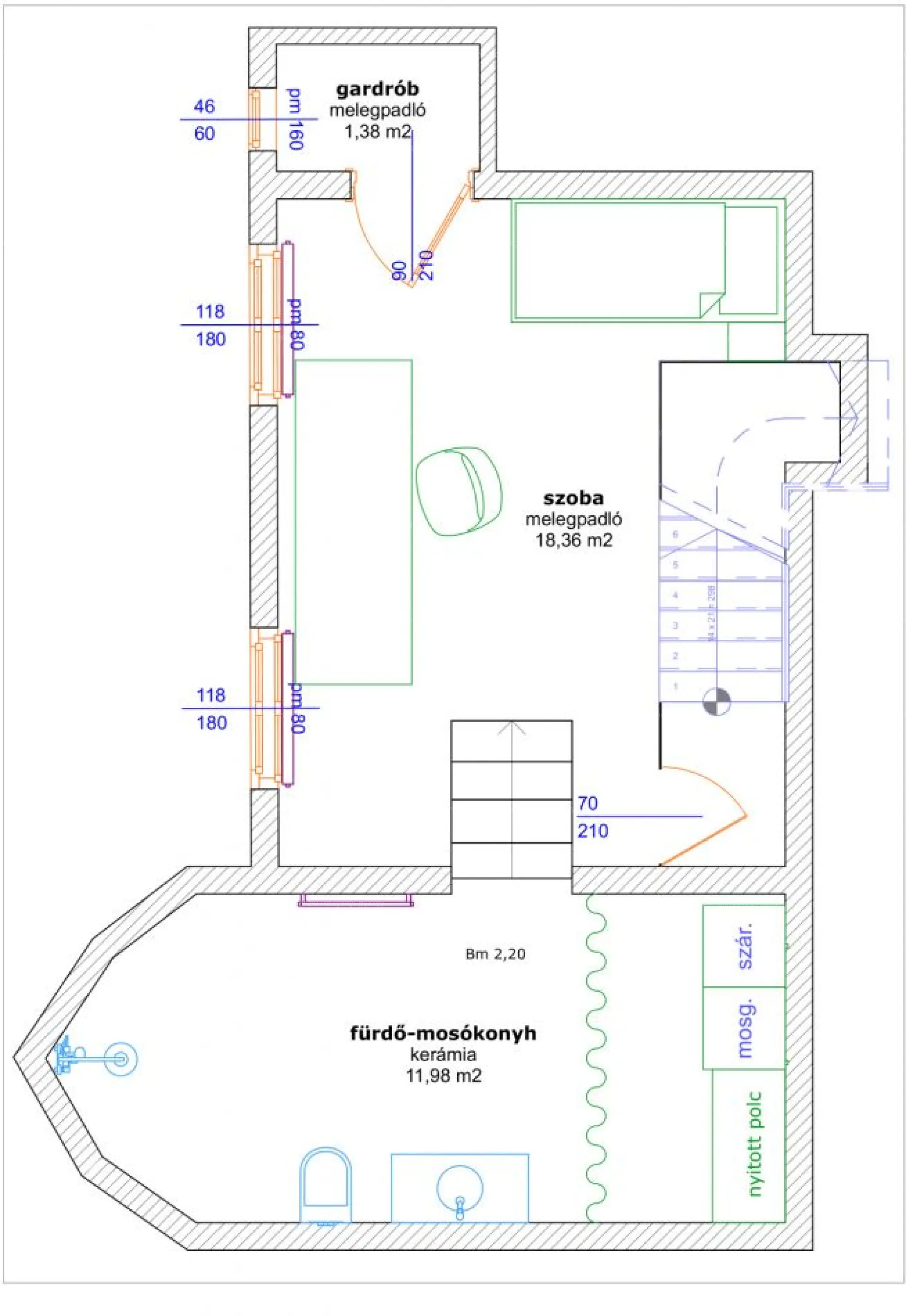 ⬇️ Alsó szint: szoba, gardrób, fürdő, mosóhelyiség