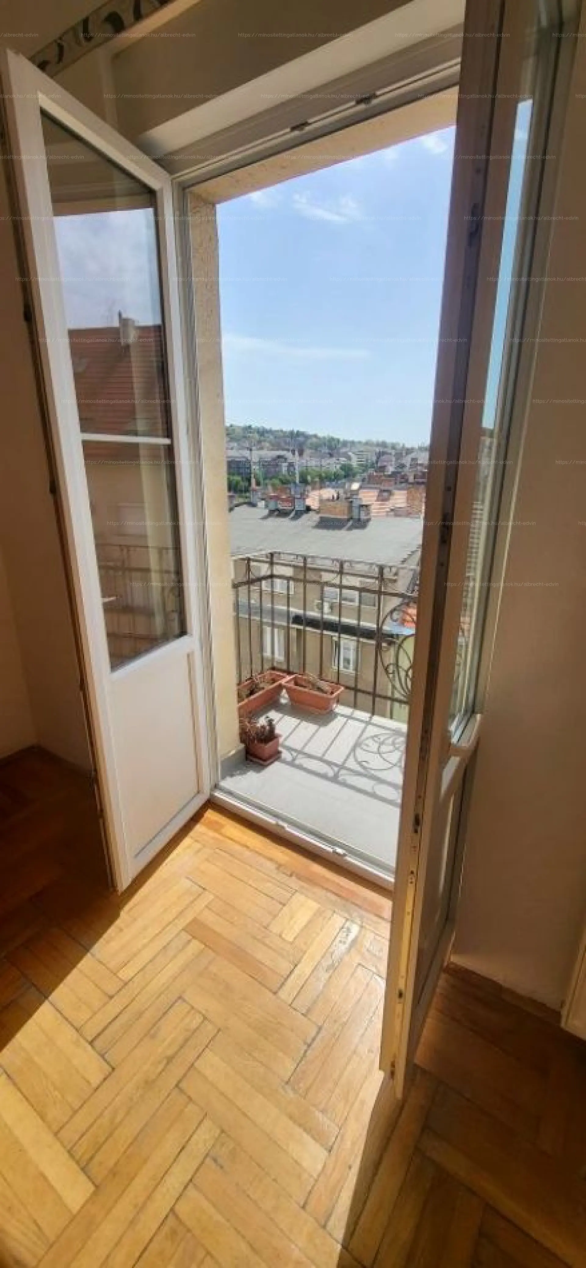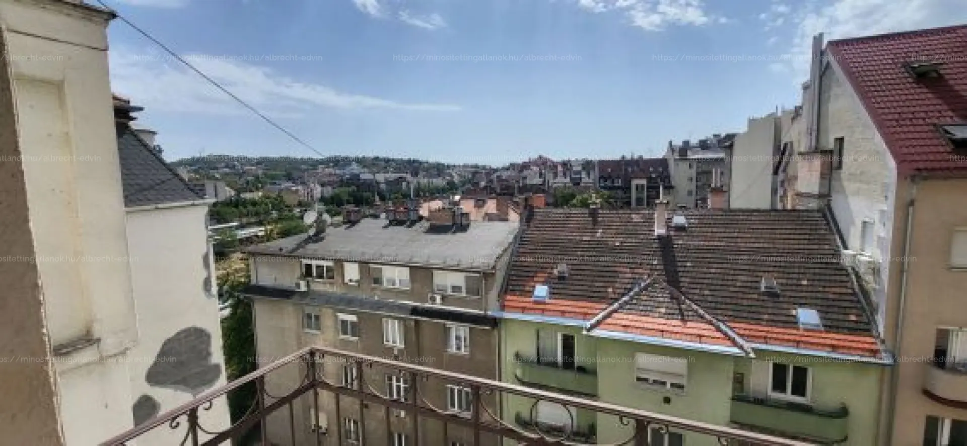 Tájolás: az erkélyes szoba déli fekvésű, utcára néz, szép rálátással a Gellért-hegyre, a másik szoba a belső udvarra néz, így csendes és pihentető