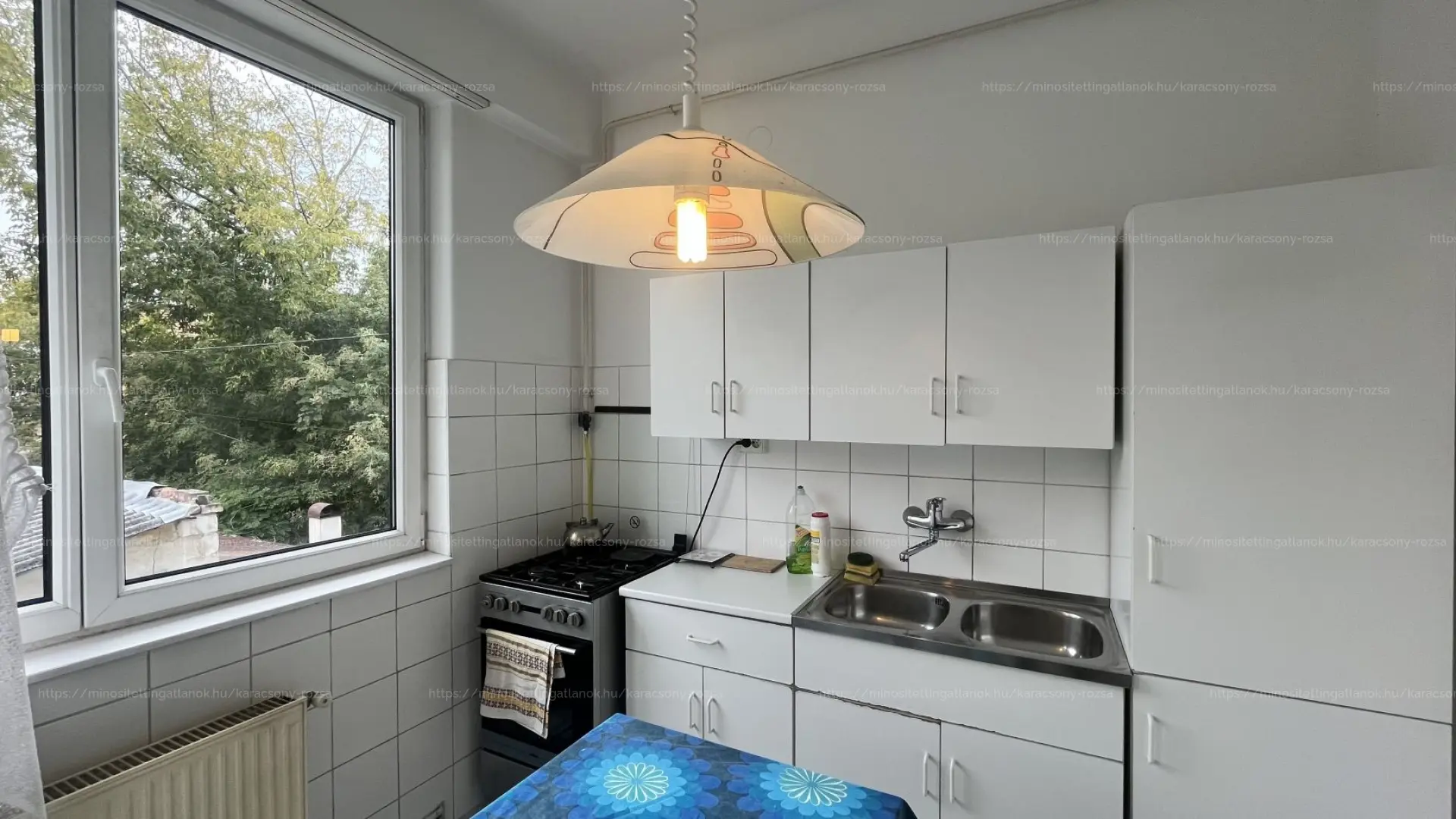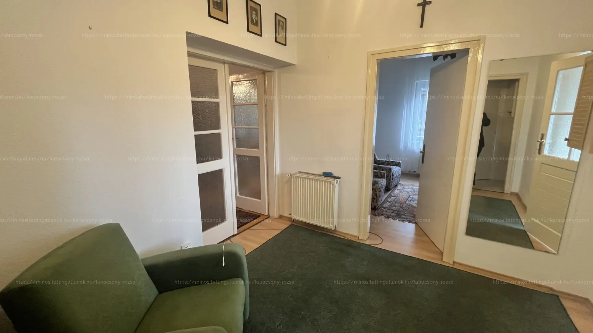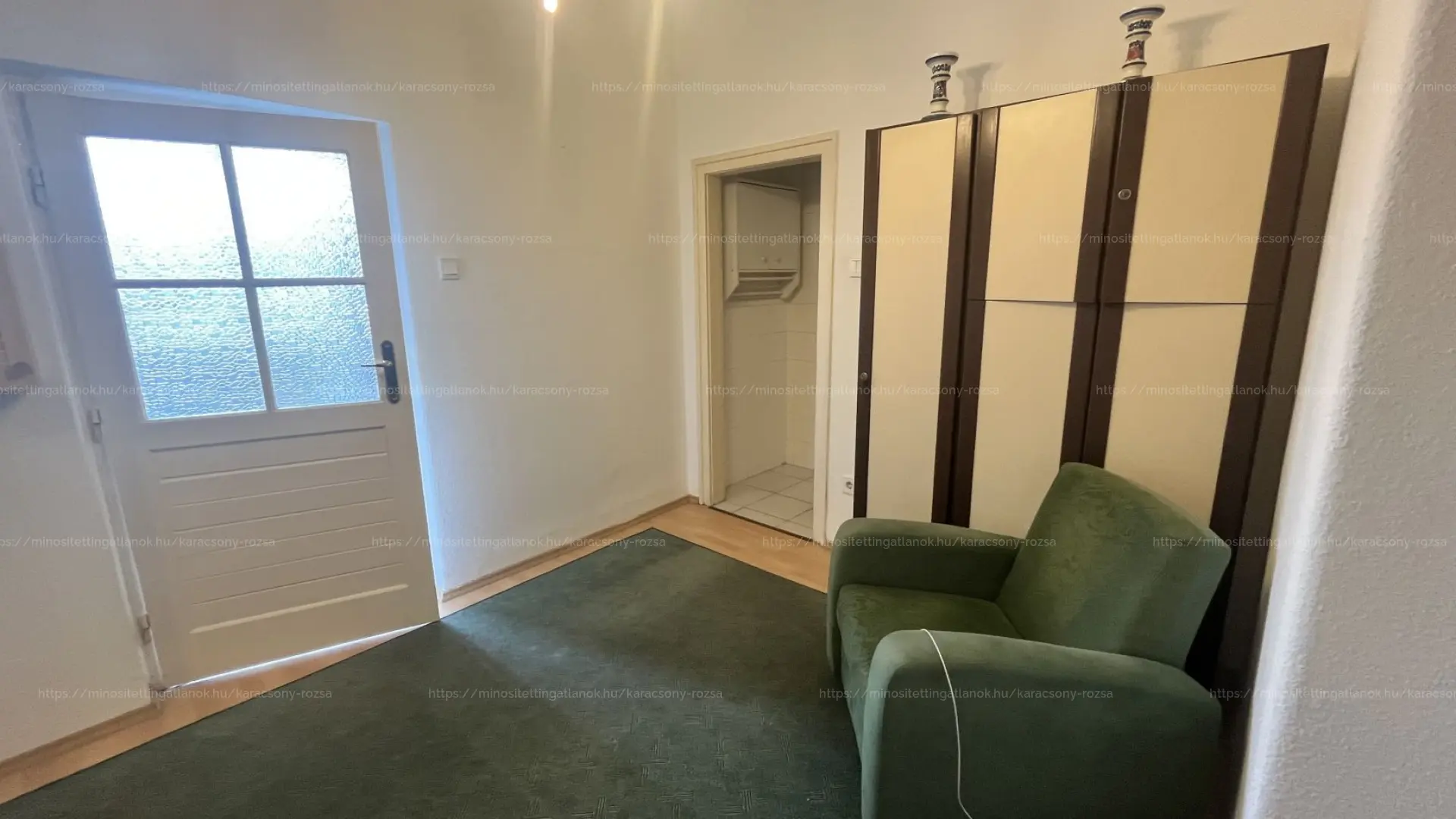 A lakáshoz tartozik közös kert, fedett autóbeálló.