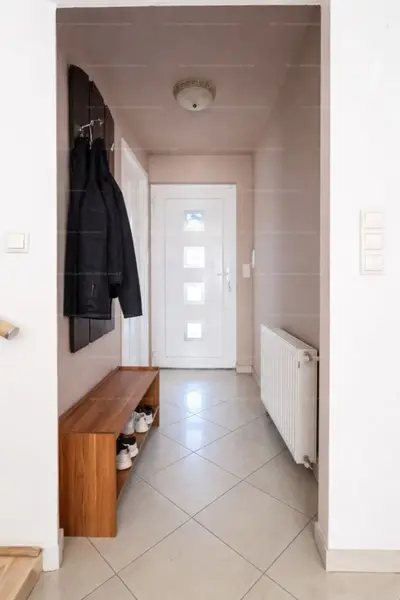 A házhoz tartozik egy 30 m²-es, két autó számára alkalmas garázs, ami parkolásra és tárolásra is kényelmes megoldás.