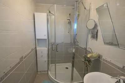 Az ingatlan nappali + 2 külön nyíló hálószobával, valamint 2 fürdőszobával rendelkezik, így akár családnak, akár otthoni munkavégzéshez is jól használható. A nappali közvetlen kapcsolatban áll a kerttel, ami valóban használható méretű nem csak zöld sáv, hanem élhető kert.