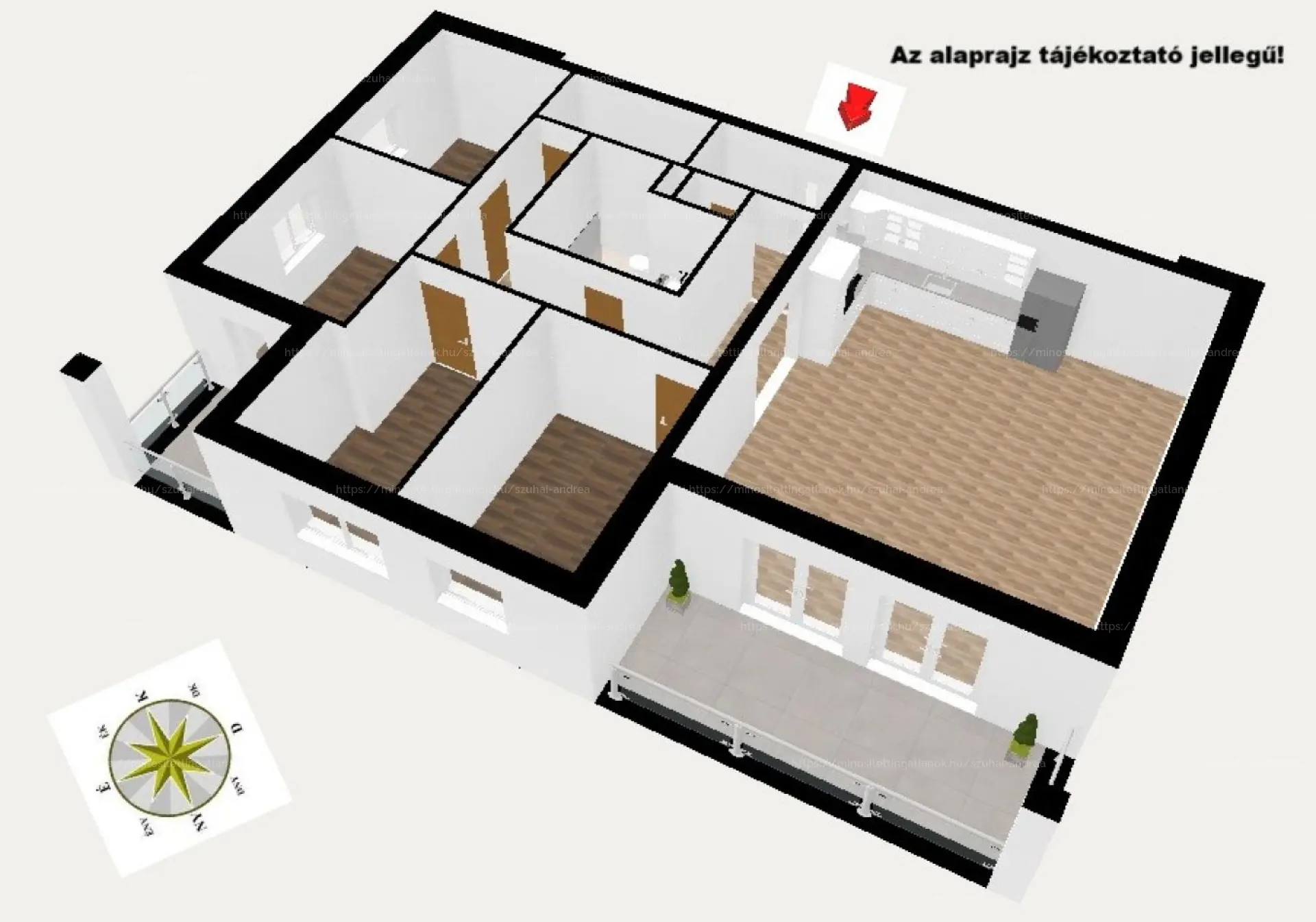Emellett egy másik szoba is SAJÁT, 6,5 m²-es TERASSZAL rendelkezik.
