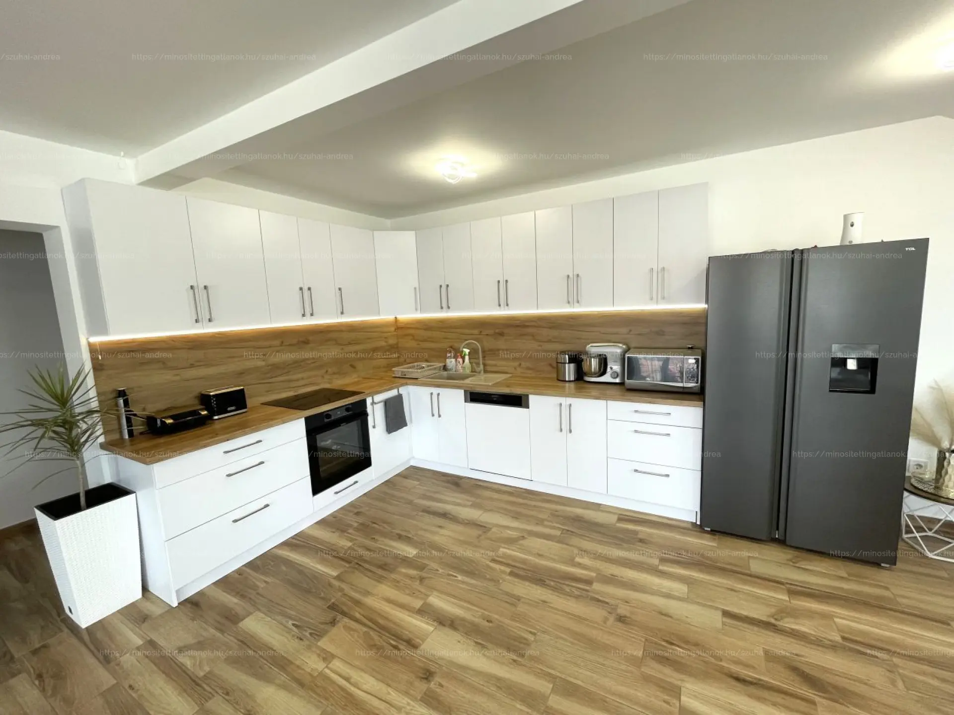 RÉSZBEN BÚTOROZOTT állapot, MODERN konyhabútorral, gránitlapos mosogatóval, beépített, ALACSONY ENERGIAIGÉNYŰ konyhai gépekkel (elektromos főzőlap- és sütő, mosogatógép).