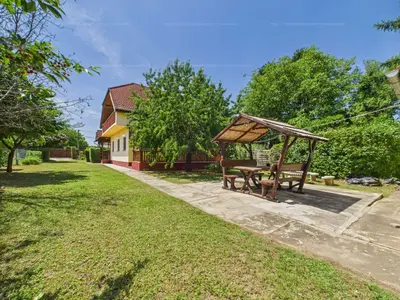 ✅ Szalonnasütő, szaletli, kerti játszótér, garázs és pince is van