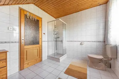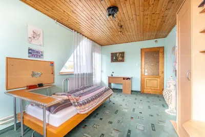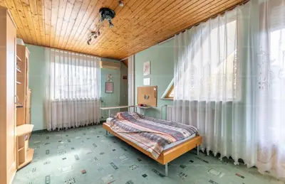 👉 Az emeleten három külön nyíló szoba található, melyek közül kettő erkélyes, valamint egy nagyobb fürdő is rendelkezésre áll.