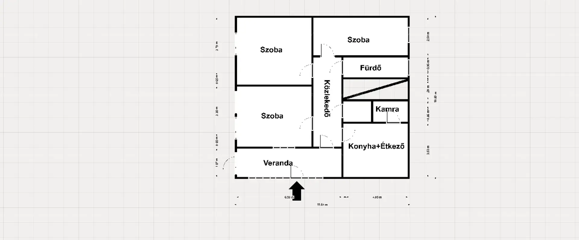 ELOSZTÁS: veranda, közlekedő, nappali, konyha+ étkező+kamra, 2 db hálószoba, fürdő, külön WC.