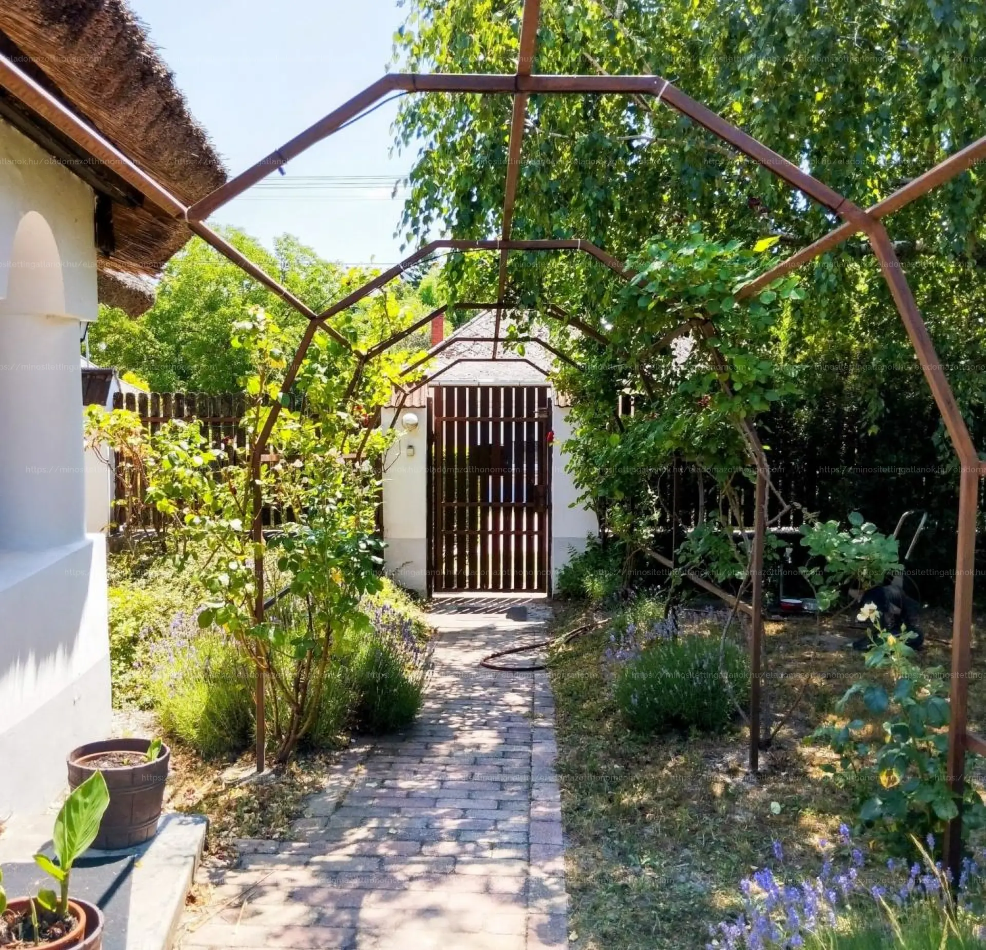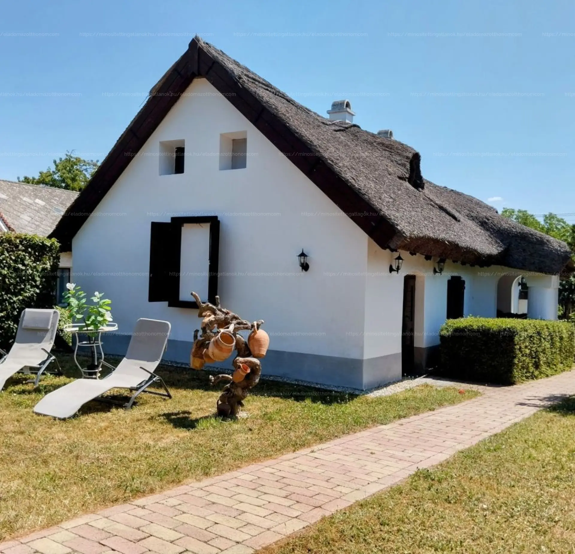 Balatonkenesén, a Balaton É-i partján eladó, több, mint 100 éves múltra visszatekintő, 110 m2 -es, tornácos, 3 és fél szobás, földszint plusz tetőteres, minden részletében gondosan felújított, lakóház minősítésű nádfedeles parasztház, belterületi 785 m2-es saroktelken.