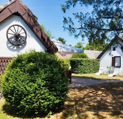 Balatonkenesén, a Balaton É-i partján eladó, több, mint 100 éves múltra visszatekintő, 110 m2 -es, tornácos, 3 és fél szobás, földszint plusz tetőteres, minden részletében gondosan felújított, lakóház minősítésű nádfedeles parasztház, belterületi 785 m2-es saroktelken.