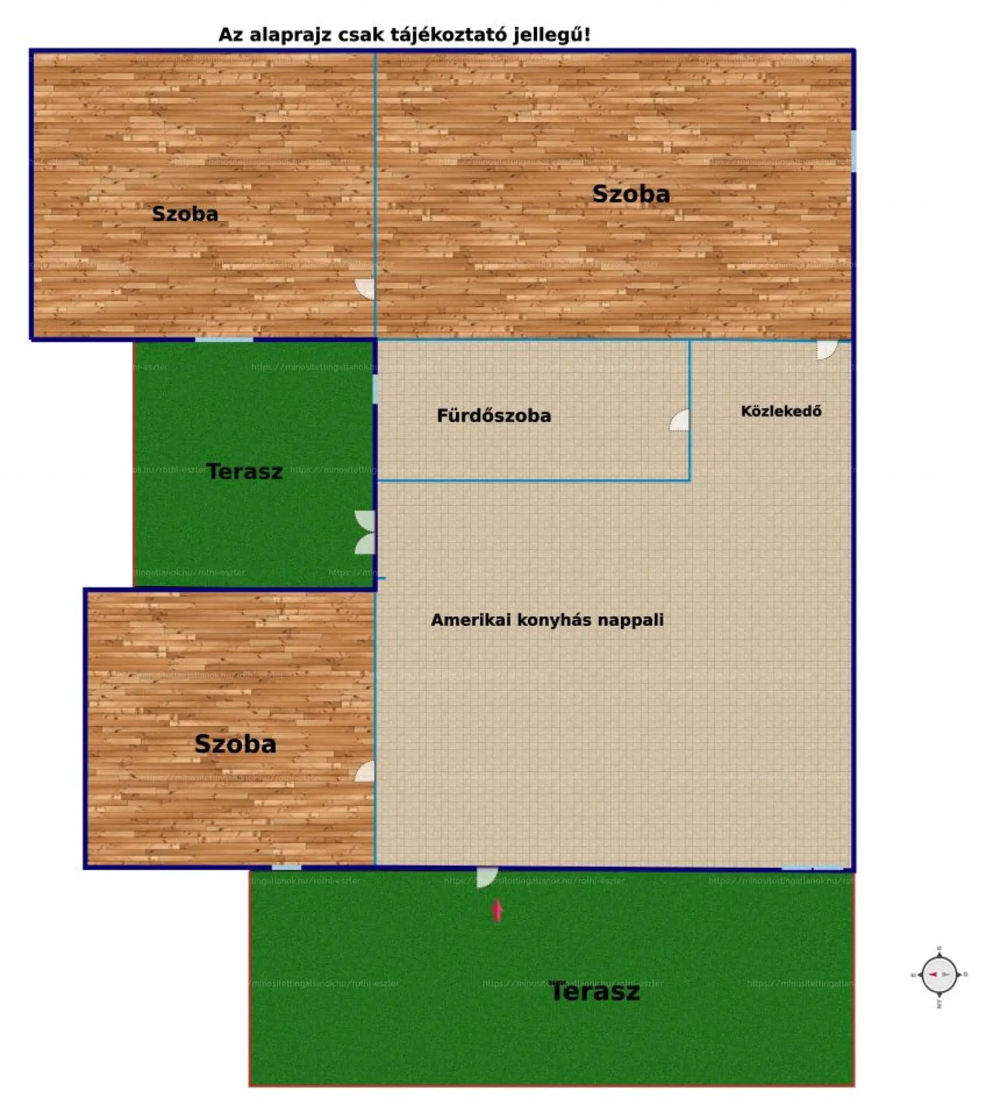 • Amerikai konyhás nappali + 3 kisebb szoba