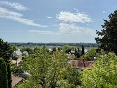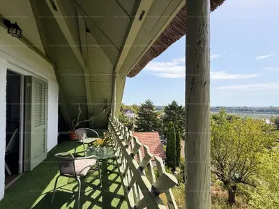A ház a Duna-parttól két perc sétára helyezkedik el, egy magaslaton, ahonnan csodás panoráma nyílik a folyóra és a környékre egyaránt.