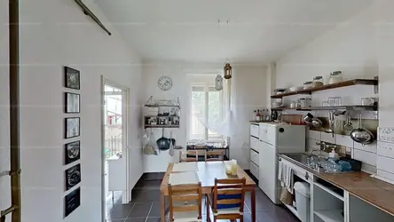 A lakás egy szépen karbantartott, belső udvaros társasház magasföldszintjén található. A belső udvar rendezett, főleg gyerekek számára értékes terület, homokozóval, hintákkal, zöld felületekkel.