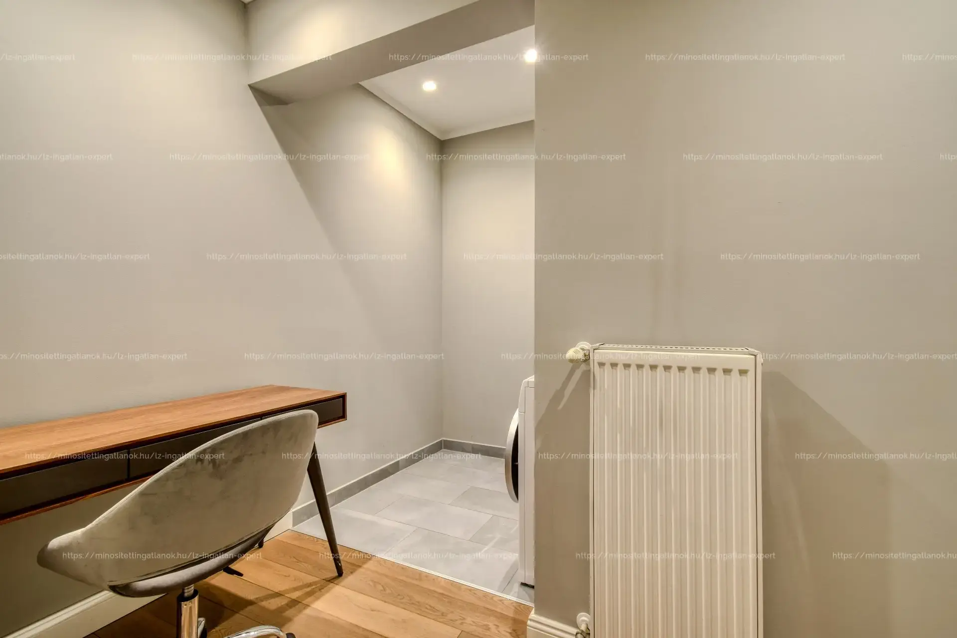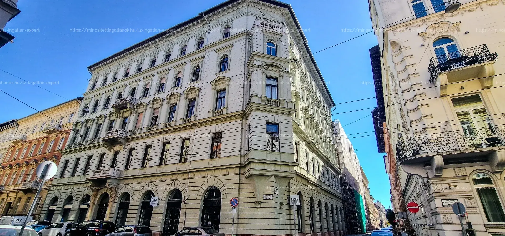 The property is located on the first floor of a beautifully renovated, classicist-style monumental building, with windows overlooking the quiet Vadász Street. The apartment underwent a complete modernisation in November 2020, with a complete renewal of the interior layout, the mechanicals and the finishes.