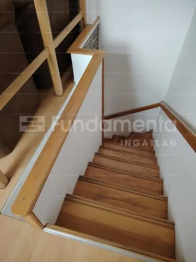 Alsó szint: tágas, egy térben kialakított konyha és nappali, melyből egy hálószoba nyílik, külön fürdőszobával.