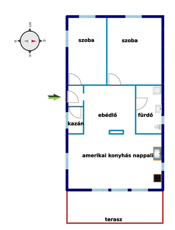 – Amerikai konyhás nappali, modern fürdőszoba, 2 hálószoba