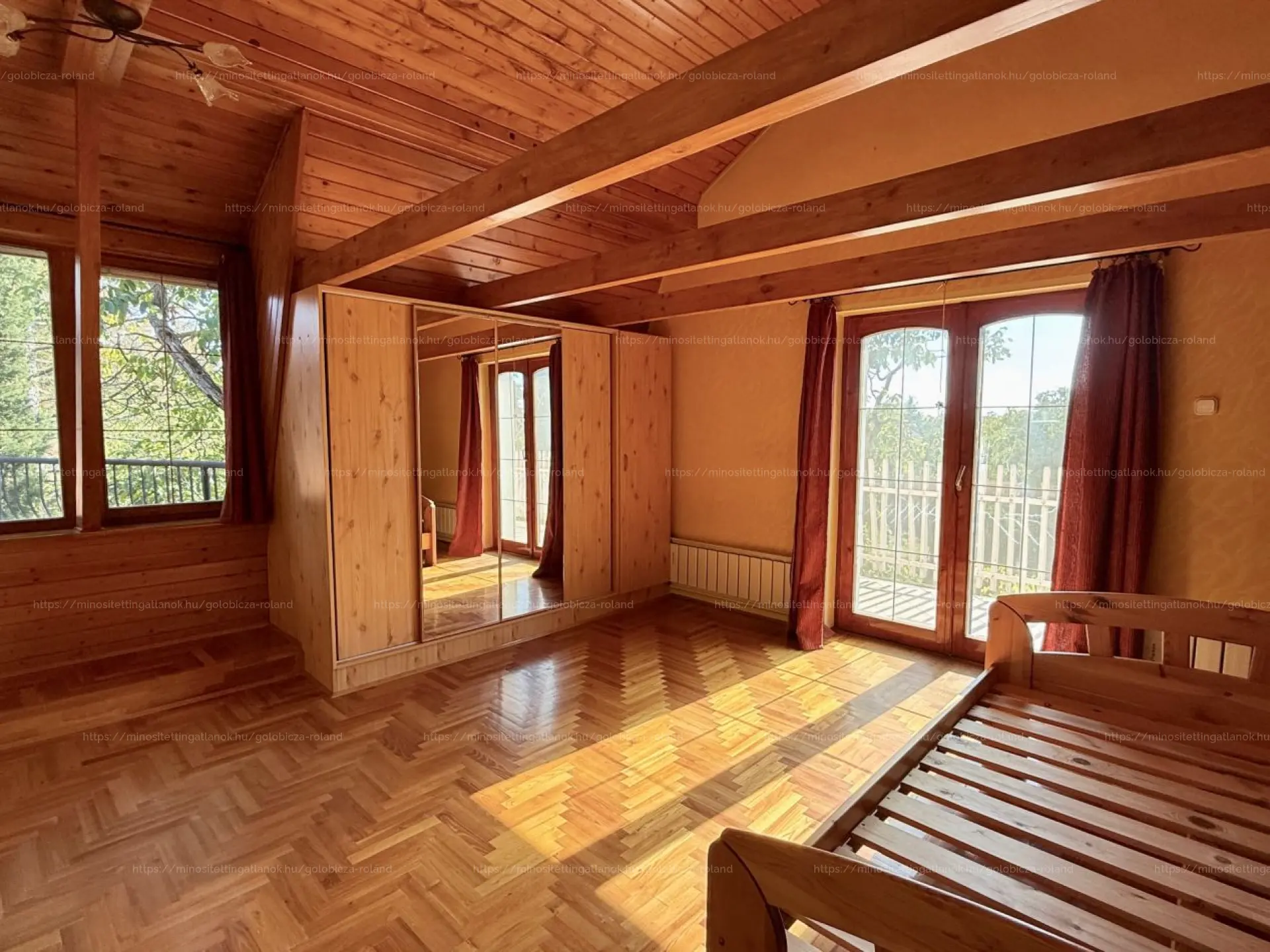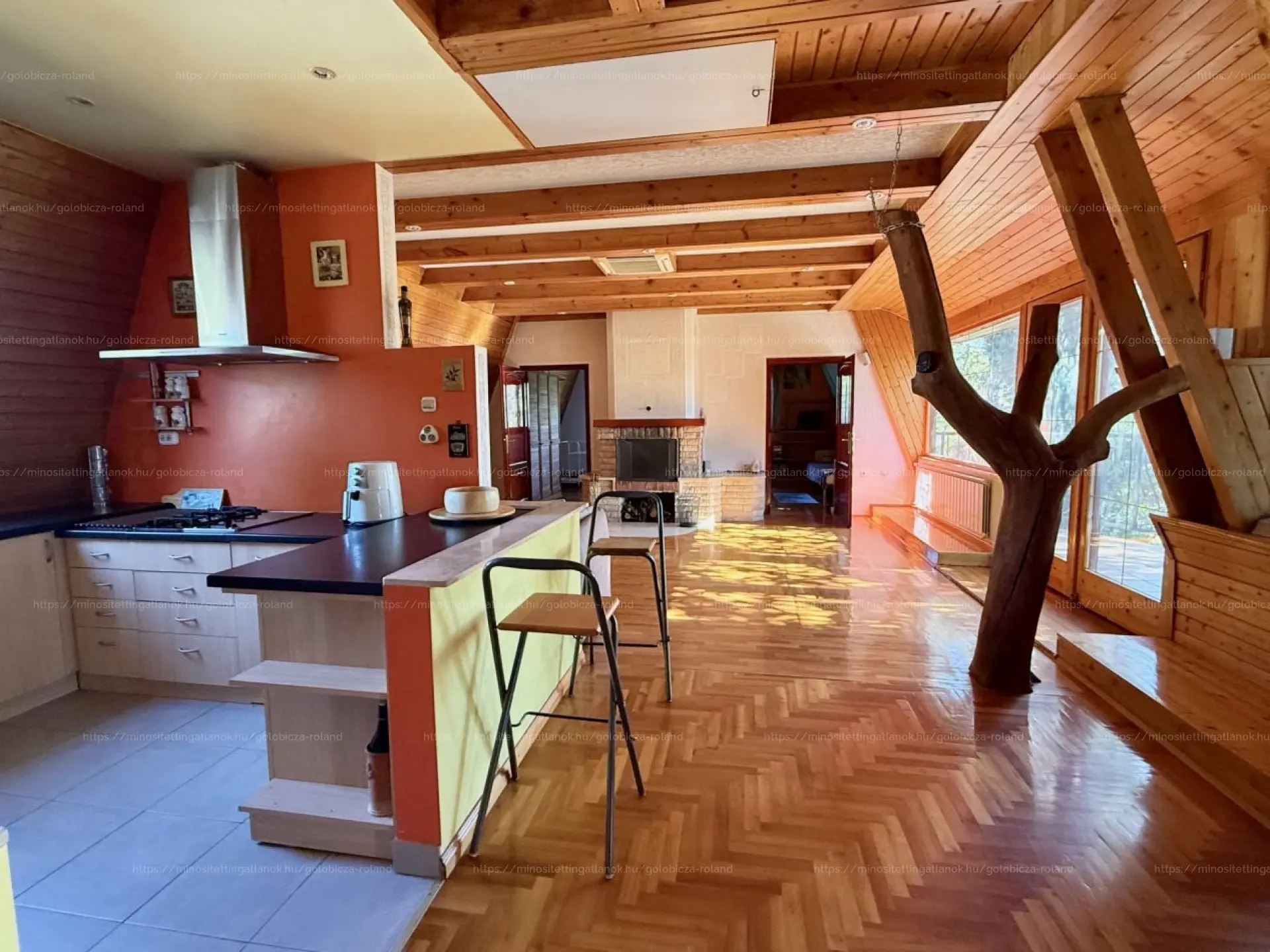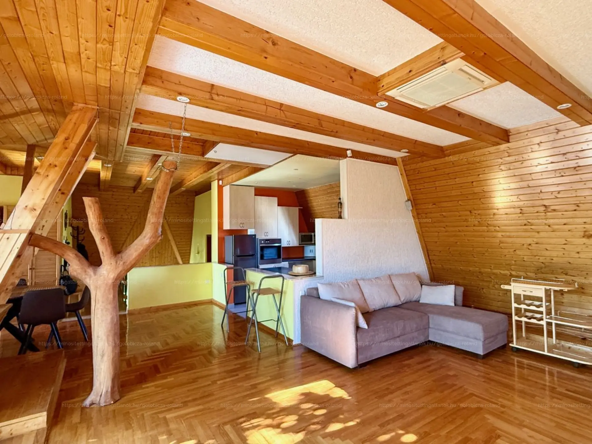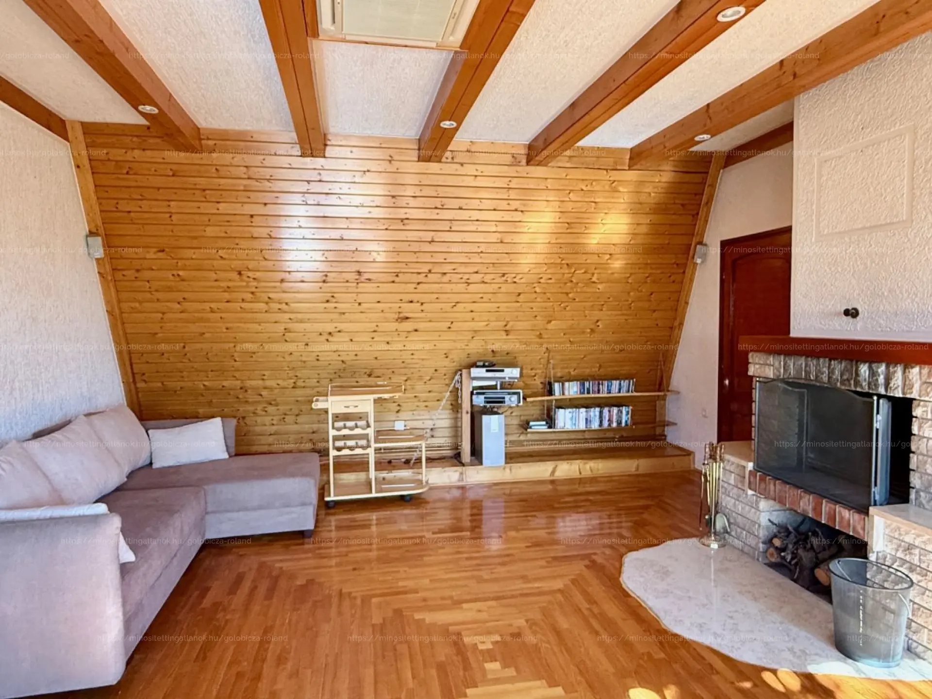 Lakás1: Központi porszívó (!!), 30-as porotherm tégla + szigetelés. Gázcirkó fűtés radiátorokkal, kiegészítő fűtés kandallóval, hűtés FAN COIL-lal. Héjazat: kerámia cserép, tető szigetelés: 10 cm Therwoolyn. Nyílászárók: fa ajtók, SOFA rendszerű hőszigetelt ablakok. Melegburkolat: fa parketta, lépcső-monolit vasbeton, keményfa burkolattal.