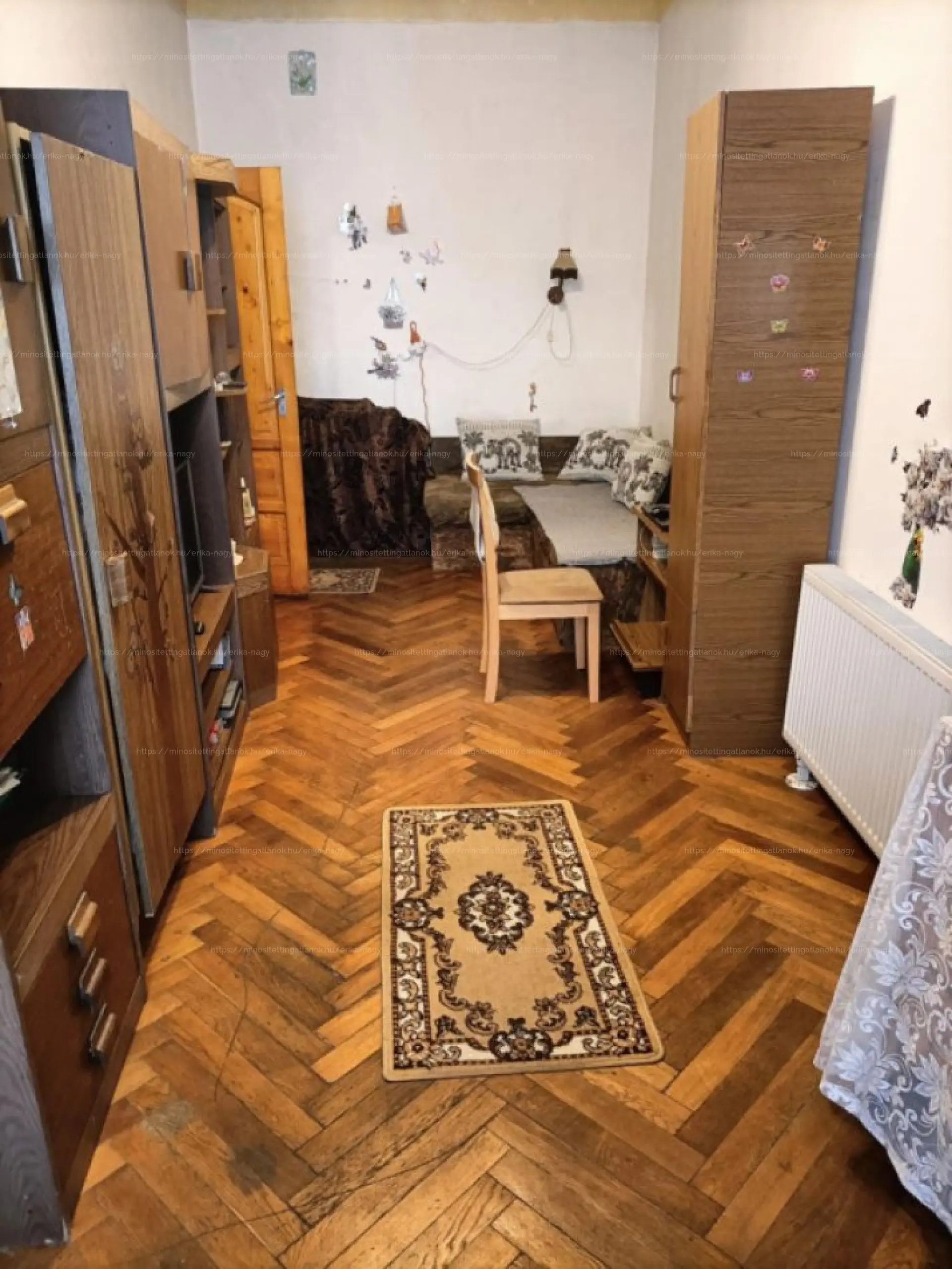 Az ingatlan jelenleg egy közös előszobából nyíló két különálló lakrészre van osztva.