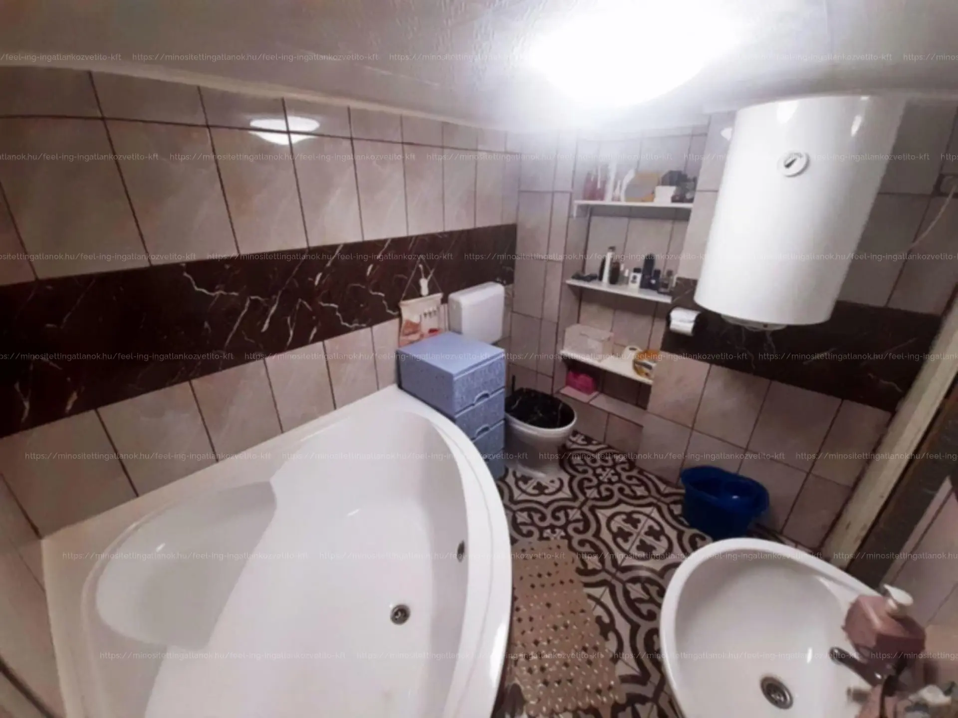 Az emeleti fürdőszoba zuhanyzóval ,még a földszinti káddal van ellátva. A melegvizet villanybojler biztosítja.