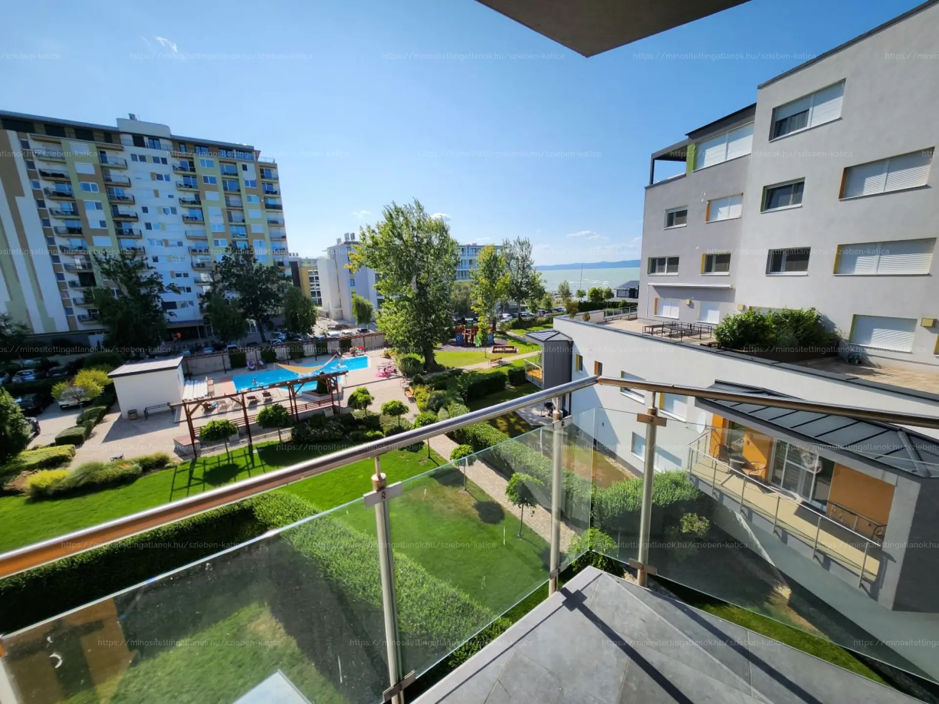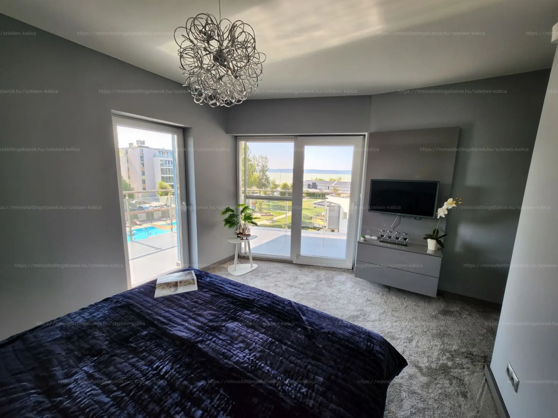 Az ingatlan egyedi alaprajza két lakás összevonásával jött létre, ennek köszönhetően különösen tágas, jól átgondolt tereket kínál. A két erkély (31 m² és 12 m²) a Balaton látványát két irányból is megmutatja, így a nap bármely szakában élvezhető a vízpart lenyűgöző atmoszférája.