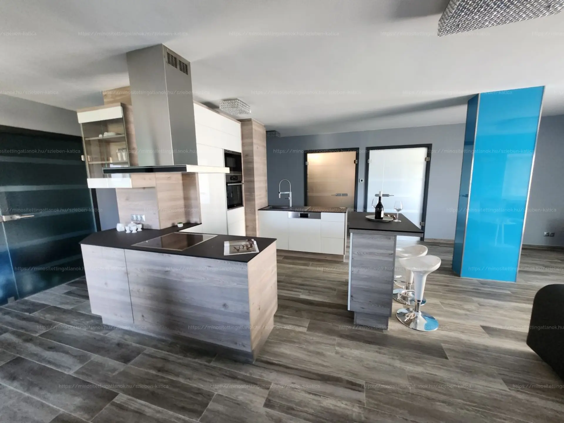 Siófokon, közvetlenül a Széplaki kikötő mögött, az Ezüstpart egyik legkülönlegesebb pontján eladó ez a páratlan adottságokkal rendelkező, 128 m²-es, két irányban balatoni örökpanorámás luxuslakás.