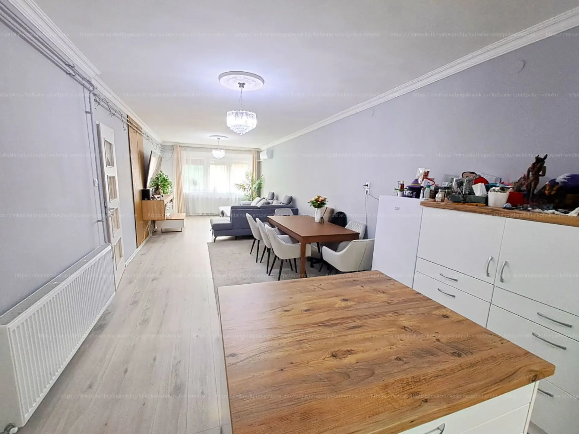 Az 1985-ben épült 11 lakásos társasház a Belváros egyik csendes utcájában található. A kétszintes összkomfortos lakás alsó szintjén egy 33 m2 nagyságú amerikai-konyhás nappali, 6 m2-es főzőrésszel és konyhaszigettel, egy szoba, egy előszoba, egy fürdőszoba, egy külön nyíló WC-helyiség és egy erkély kapott helyet. Az emeleten egy 27 m2 nagyságú nappali, két félszoba, két közlekedő, egy fürdőszoba-WC helyiség és egy 6 m2 nagyságú fedett loggia került kialakításra. A lakás helyiségei laminált padló- és járólap borítást kaptak. A földszinten egy 5,2 m2-es saját zárt tároló található, mely a vételár részét képezi. A lakáshoz igény szerint egy 18 m2 nagyságú, vízbekötéssel rendelkező garázs is vásárolható. Az épület beton alapon tégla falazattal, beton födémmel, fa tetőszerkezettel és égetett cserép héjazattal készült, körben csatornával ellátott. A homlokzat 5 cm hőszigetelést és nemesvakolatot kapott. A külső nyílászárók dupla üvegezésű műanyagra cseréltek, redőnnyel és szúnyoghálóval ellátottak, a belsők jó állapotú fa szerkezetűek. A tetőablakok Roto zárszerkezettel és árnyékolással lettek beépítve. A lakás előnye, hogy szintenként külön mérhető közművekkel és fűtésrendszerrel rendelkezik, így a nagyméretű előszoba megosztásával két teljesen külön nyíló lakás alakítható ki. Az összközműves lakásban a közművek közül a két mérőórás egyfázisú (25 Amperes) villany, szintenként Fi relével és körökre osztott kismegszakítókkal, valamint részben cserélt villamoshálózat, szintenként külön gázóra, a szintén duplán mérhető hidegvíz-ellátás és a csatorna rendelkezésre állnak. Az otthon melegét és a melegvíz ellátását emeletenként Immergas kondenzációs kombi gáz-cirkó kazán biztosítja, radiátoros hőleadással. Alternatív megoldásként az ingatlanban öt darab hőleadóval rendelkező, több klímaegység is beszerelésre került. A kombi kéményrendszer új gázbélés csövezést kapott, valamint új tetőkibúvó, kilépő és létra került felszerelésre. A lakás kialakítása miatt ideális választás nagycsaládosok vagy családalapítás előtt álló párok, bérbeadók és befektetők számára egyaránt, de tágas terei miatt akár kétgenerációs lakhatásra is alkalmas lehet. A lépcsőház jó állapotú, tiszta, zárt, biztonsági kóddal nyitható, ezen belül a lakás emeleti bejáratához tartozik egy kizárólagos használatú 6 m2-es fedett folyosórész is. Az ingatlan elhelyezkedése kiváló, a közelben minden megtalálható: többféle bevásárlási lehetőség, Polgármesteri Hivatal, óvoda, általános iskola, egészségügyi intézmény, középiskola néhány száz méteren belül megtalálható, a tömegközlekedés megoldott. A hirdetés tájékoztató jellegű, az ingatlanról pontos adatokat a megtekintést követően a tulajdonos által elmondottak alapján tudunk garantálni! A vásárlás finanszírozásában az OTP kedvezőbb kamatozású hitelkonstrukcióival, CSOK Plusz támogatott hitel lehetőségével tudunk segíteni. Az adásvételi szerződés lebonyolításához korrekt ügyvédi közreműködést tudunk ajánlani. Amennyiben felkeltettem érdeklődését, hívjon bizalommal!