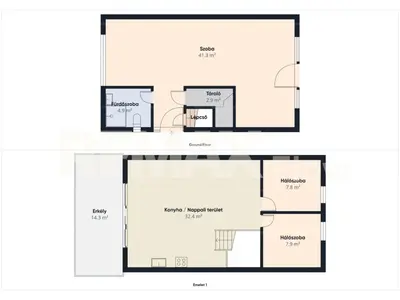 👉 Emelet: 2 hálószoba, amerikai konyhás nappali, erkély zöldövezeti kilátással