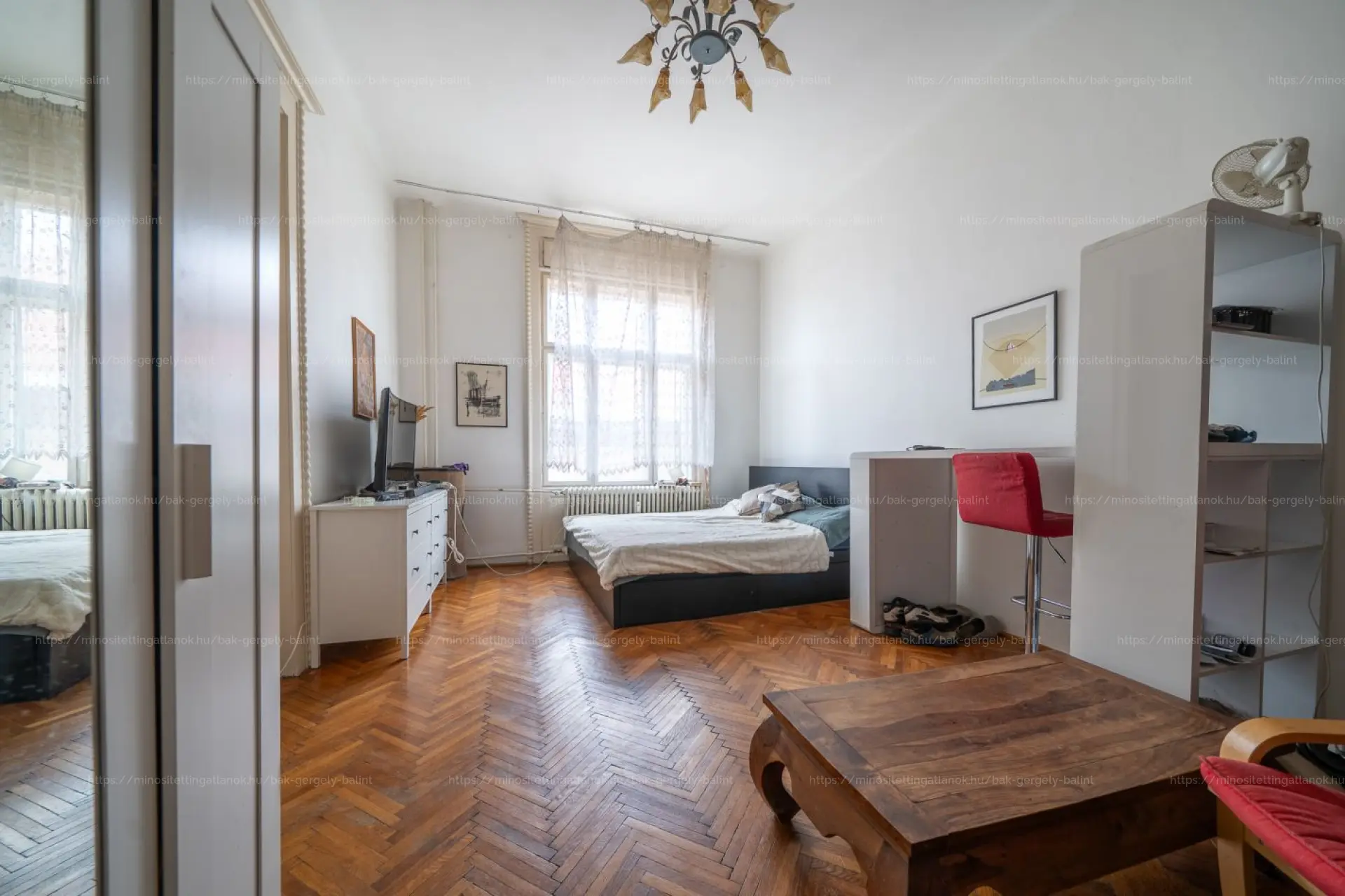 • Elosztás: 2 nagy szoba + 1 ablakos félszoba