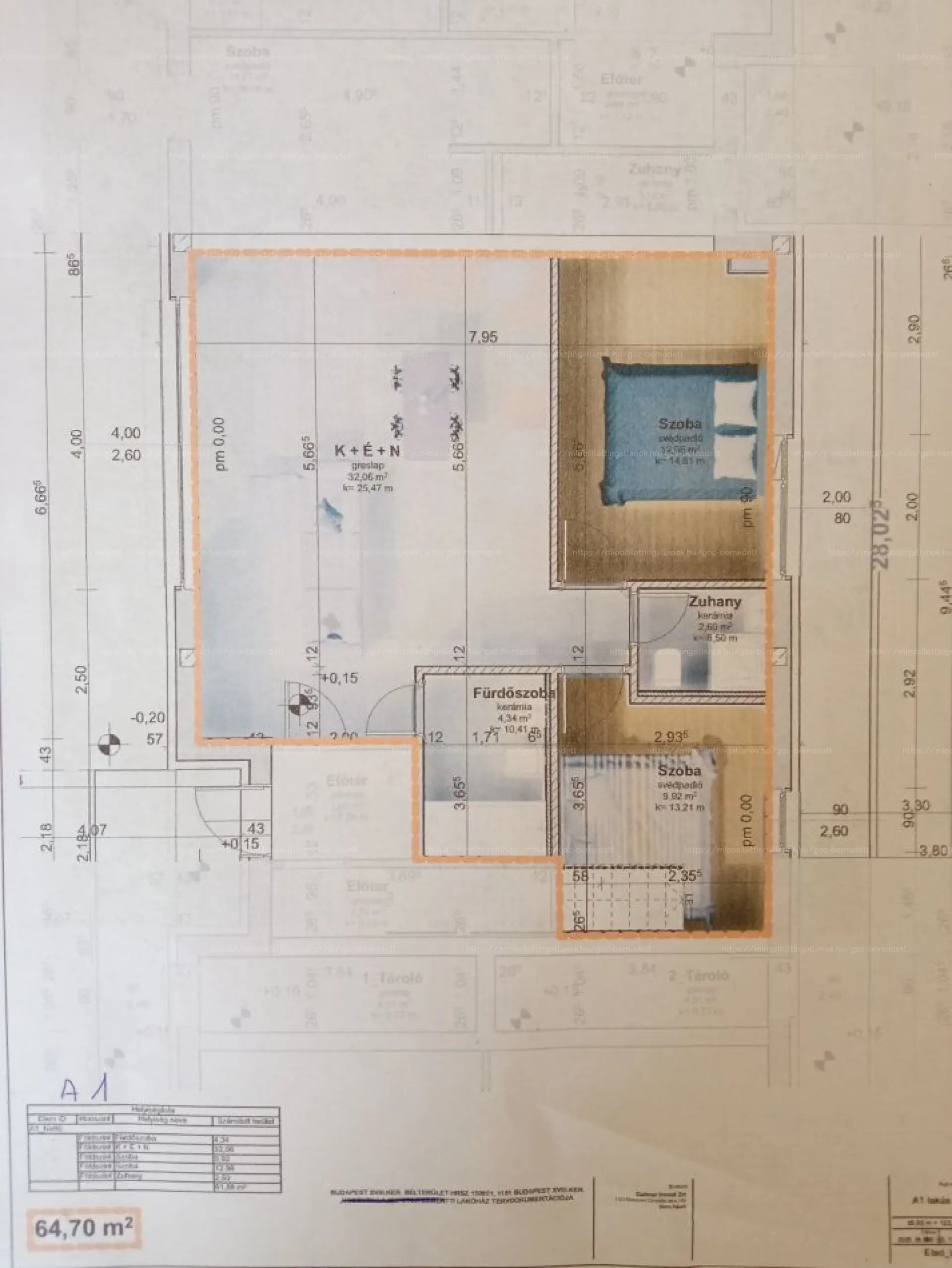 -A1 Lakás 64.7m2 ( Nappali-Konyha + 2 Háló + 2 Fürdő ) - 77.99mFt