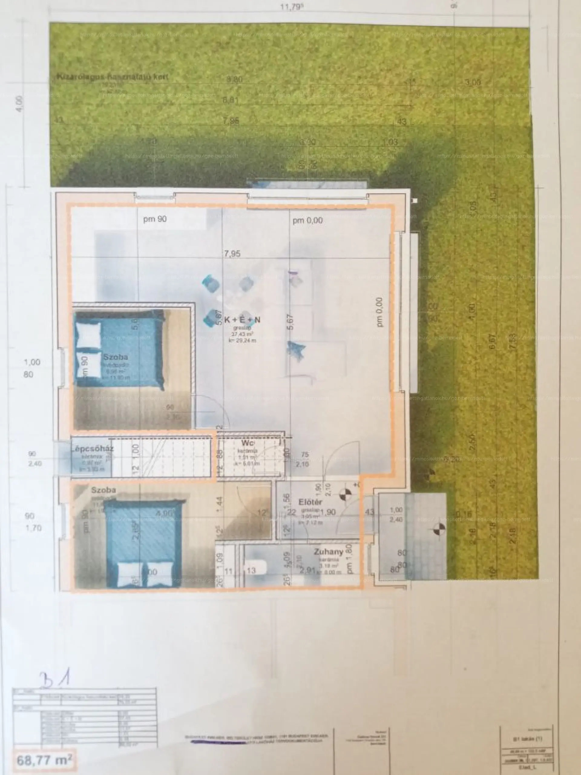 -B1 Lakás 69m2 + Saját kert 79m2 ( Nappali-Konyha + 2 Háló + Fürdő + Toalett + Kert 79nm. ) - 83.99mFt