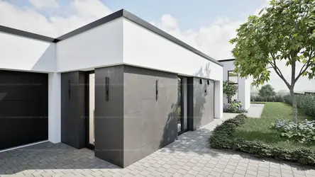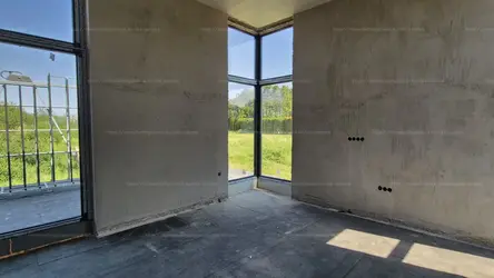 A ház 3 hálószoba + tágas nappali elrendezésű, különlegesen nagy, 360 cm belmagassággal, amely elegáns és levegős tereket biztosít.