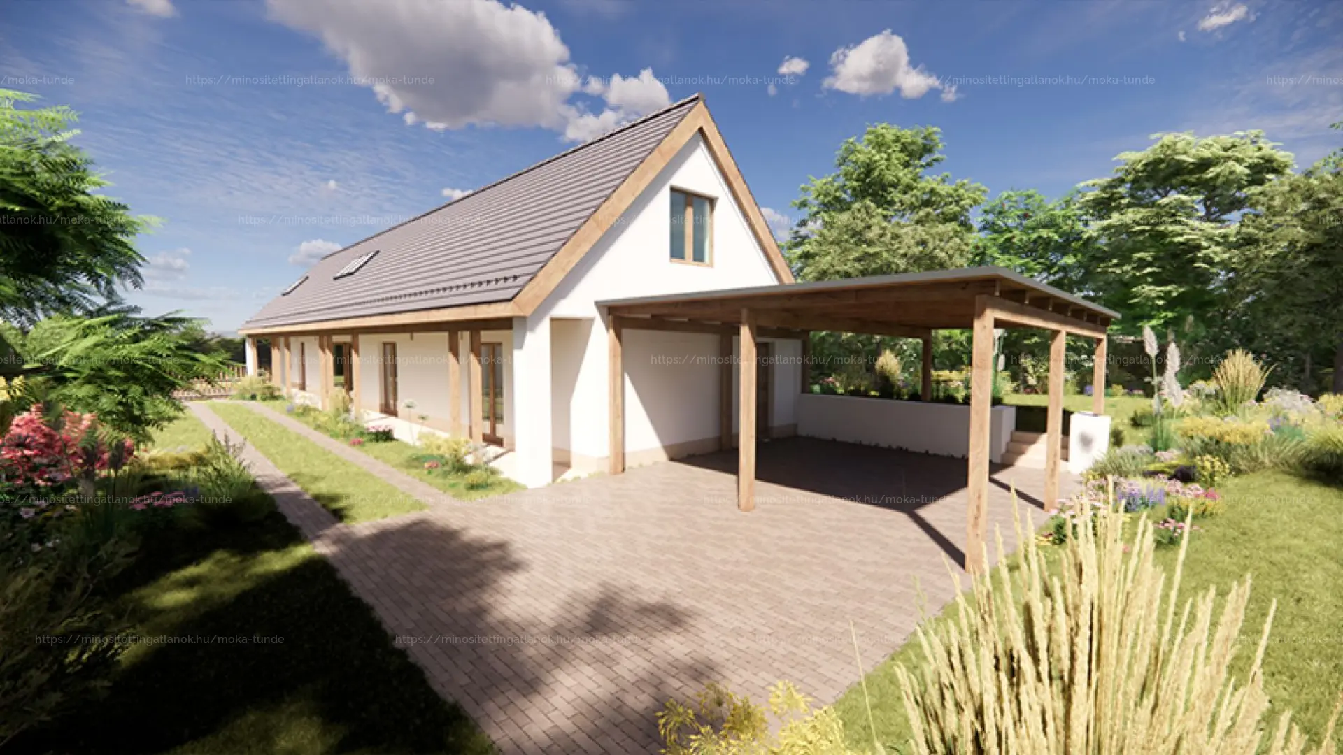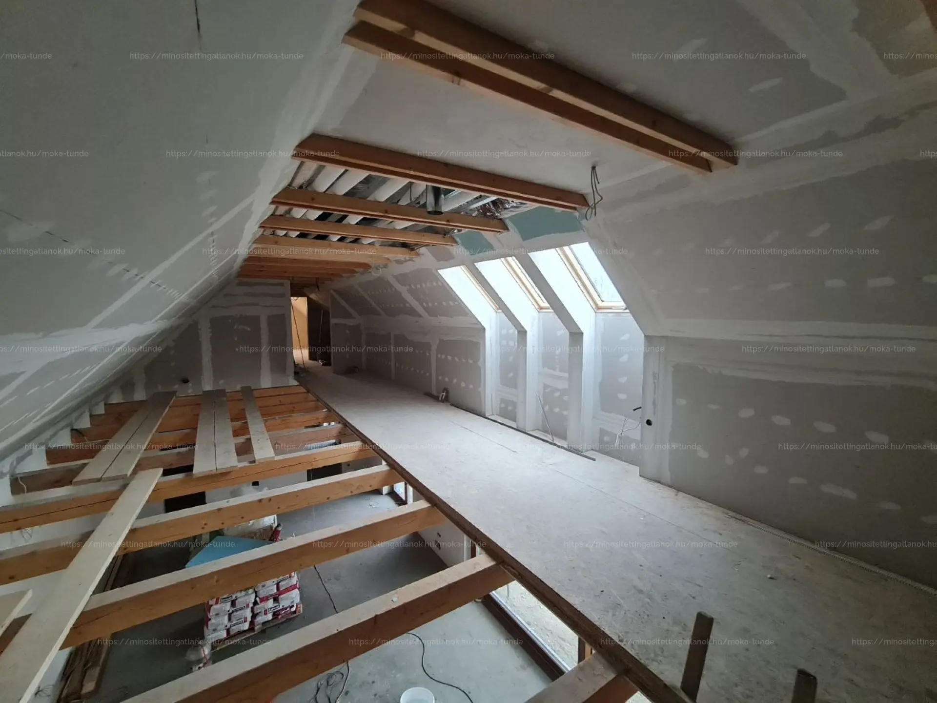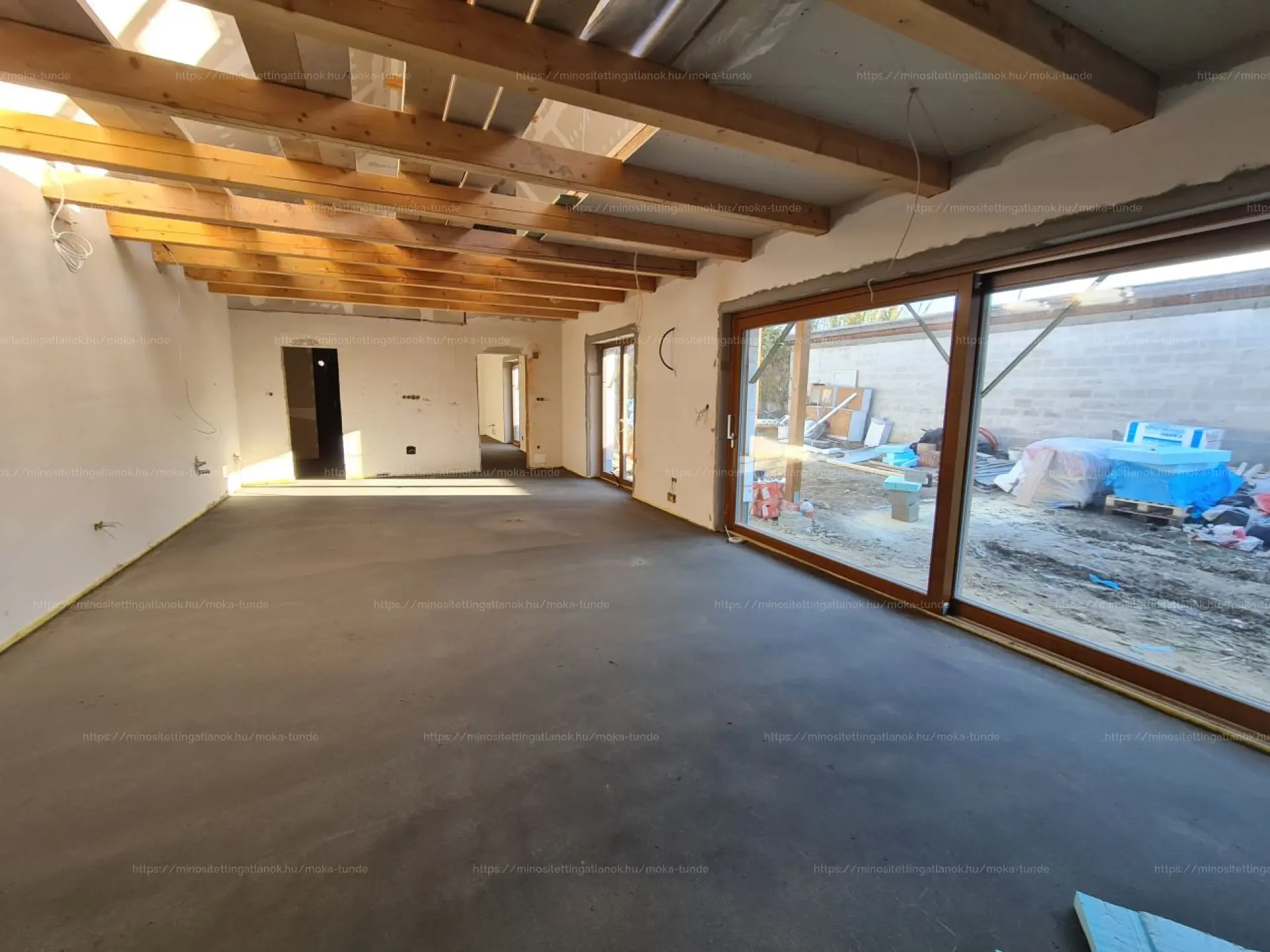 - Fa szerkezetű födém, nappaliban látszó gerendázattal, szobák között hangszigeteléssel
